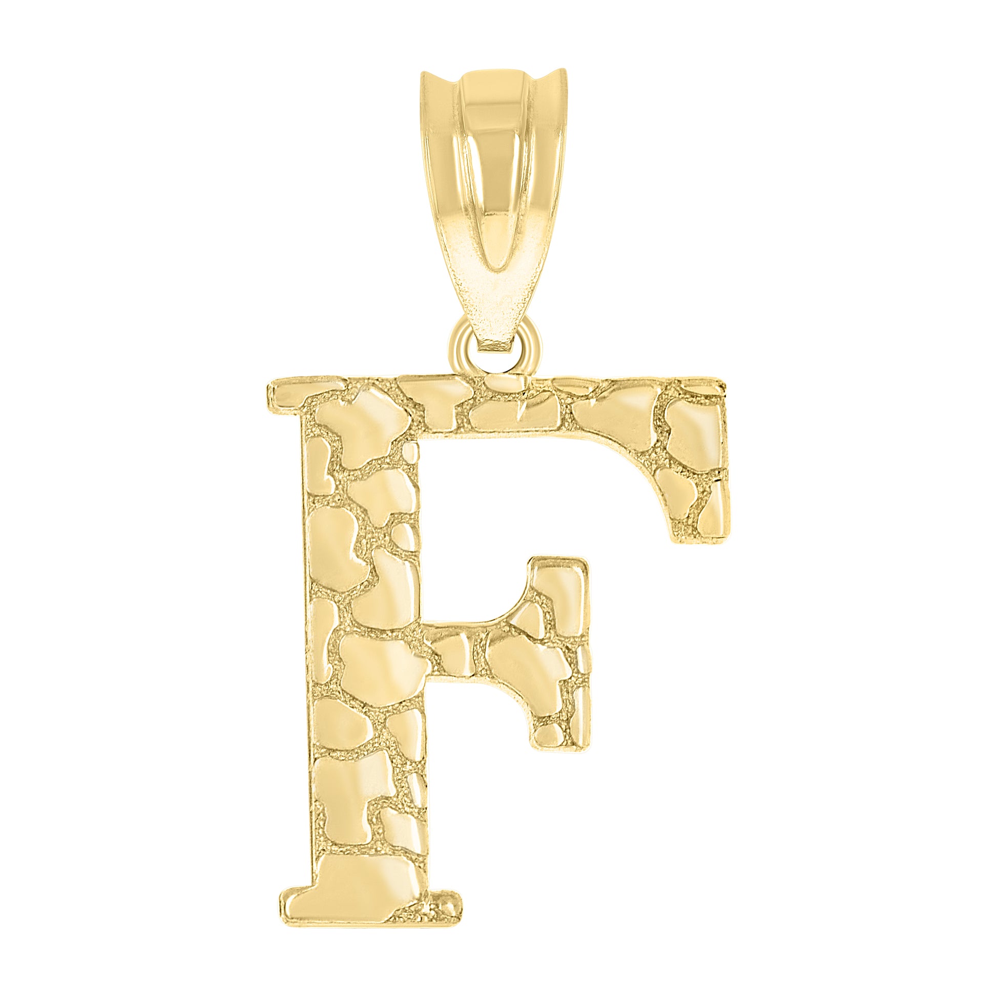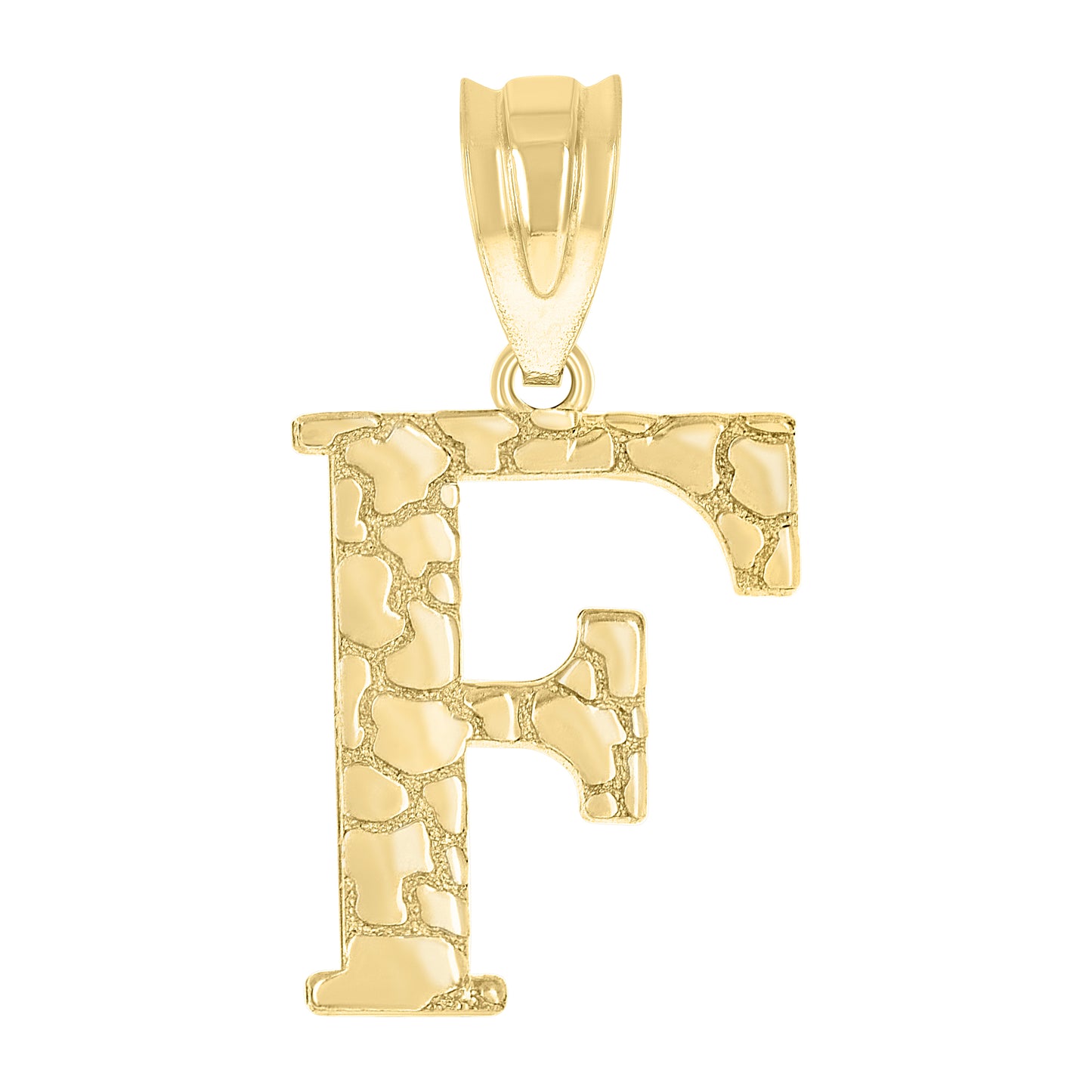 10kt Yellow Gold Unisex Nugget Initial F Charm Pendant