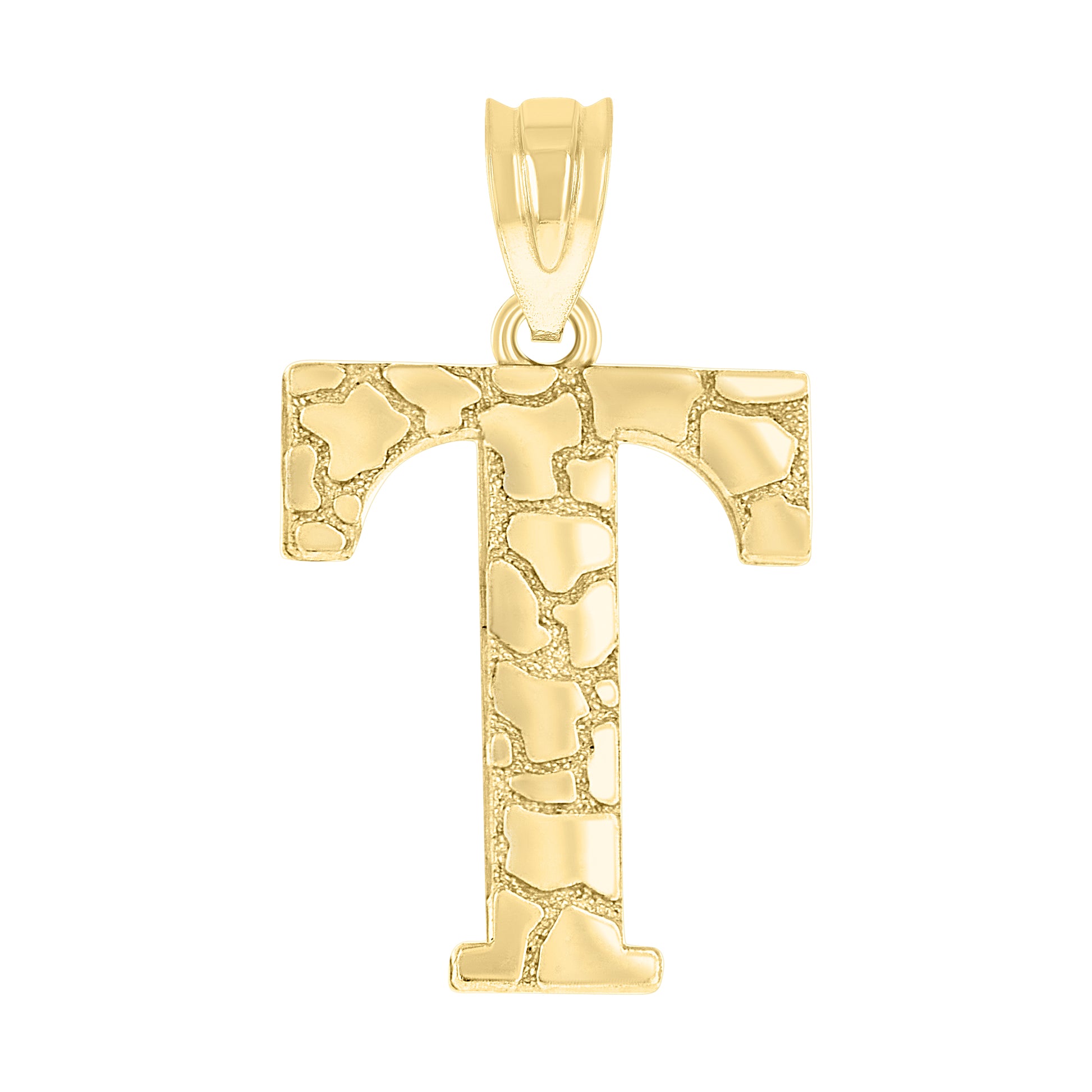10kt Yellow Gold Unisex Nugget Initial T Charm Pendant