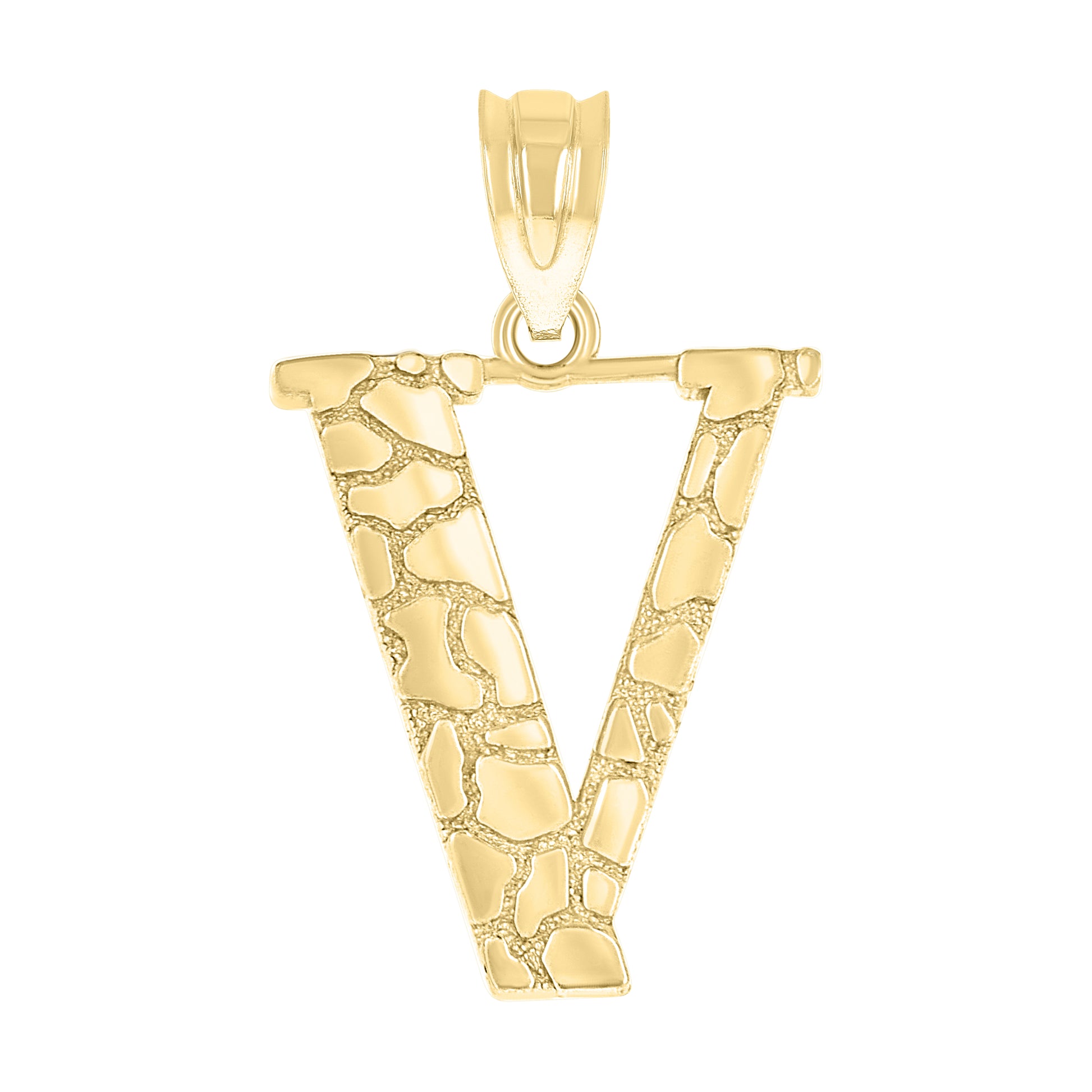 10kt Yellow Gold Unisex Nugget Initial V Charm Pendant
