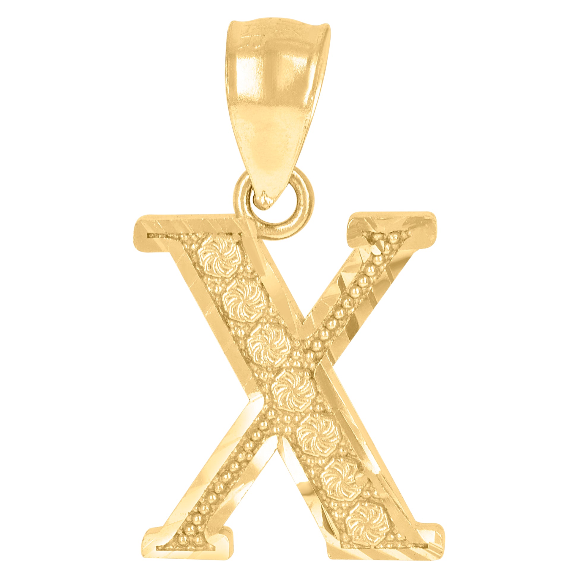 10kt Yellow Gold Unisex Initial X Alphabet Charm Pendant