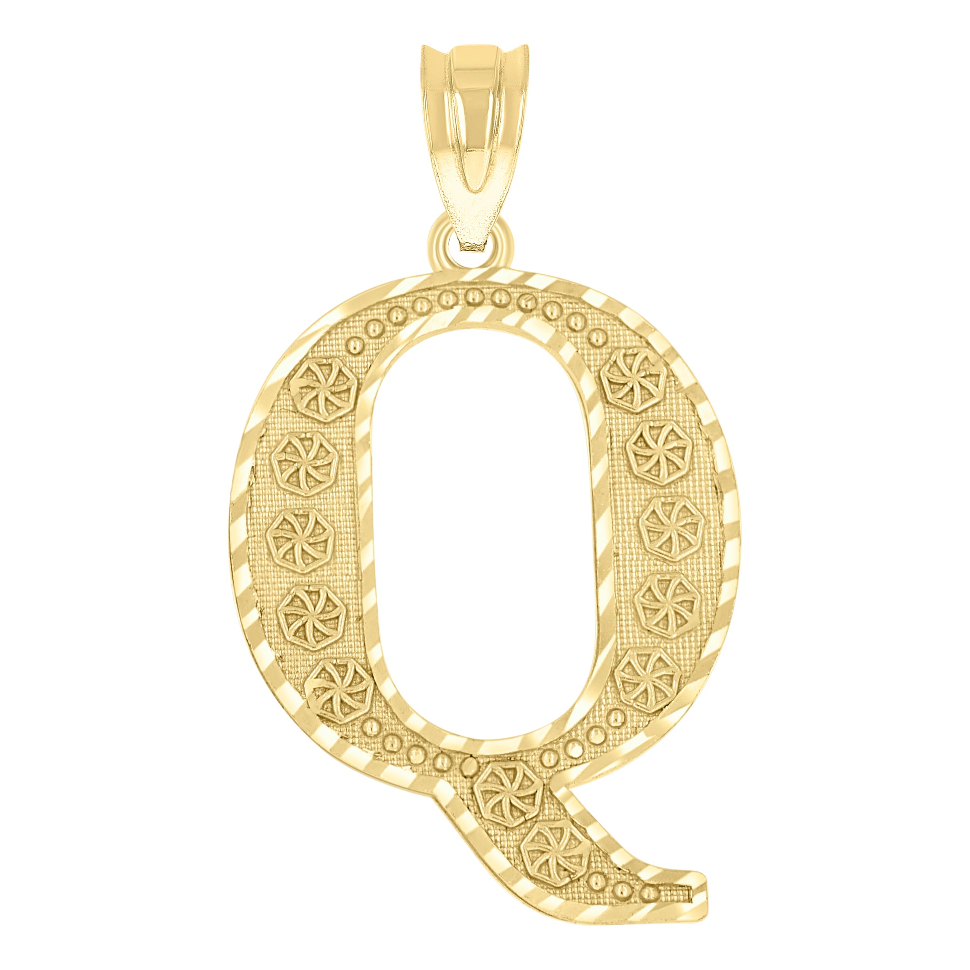 10kt Yellow Gold Unisex Initial Q Alphabet Charm Pendant