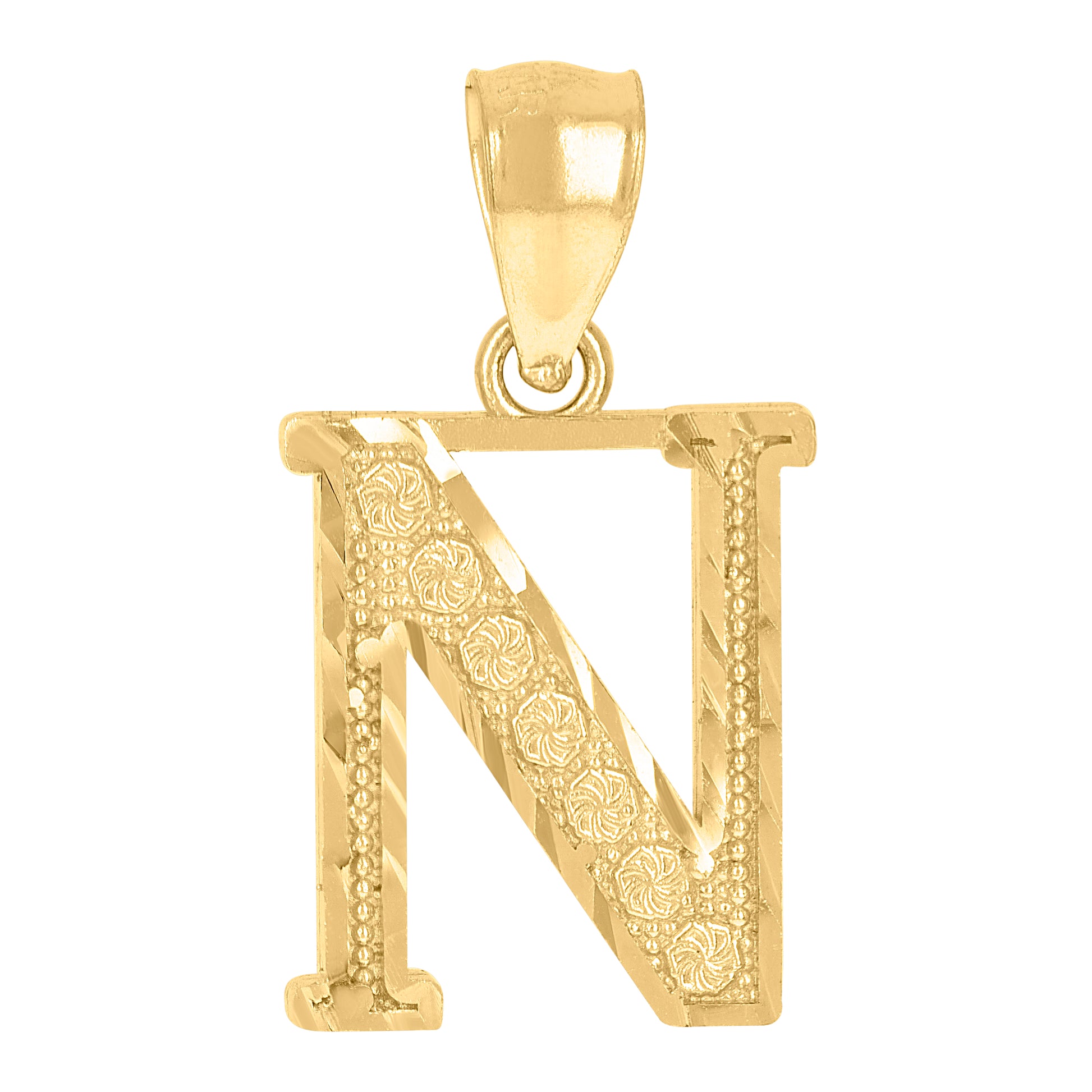 10kt Yellow Gold Unisex Initial N Alphabet Charm Pendant