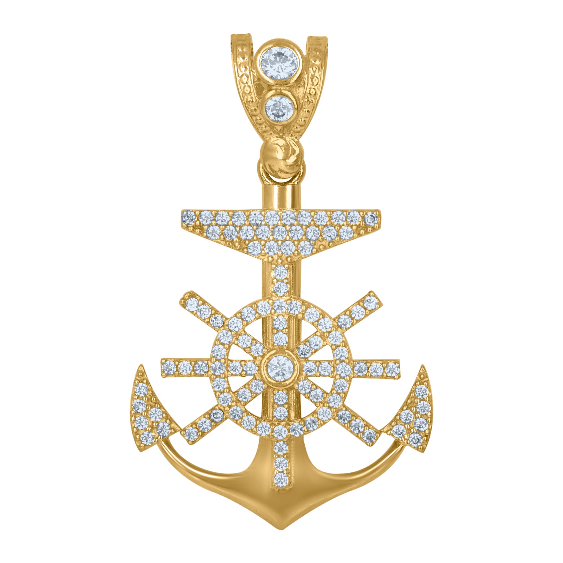 10kt Yellow Gold Mens Cubic Zirconia Anchor Ocean Charm Pendant