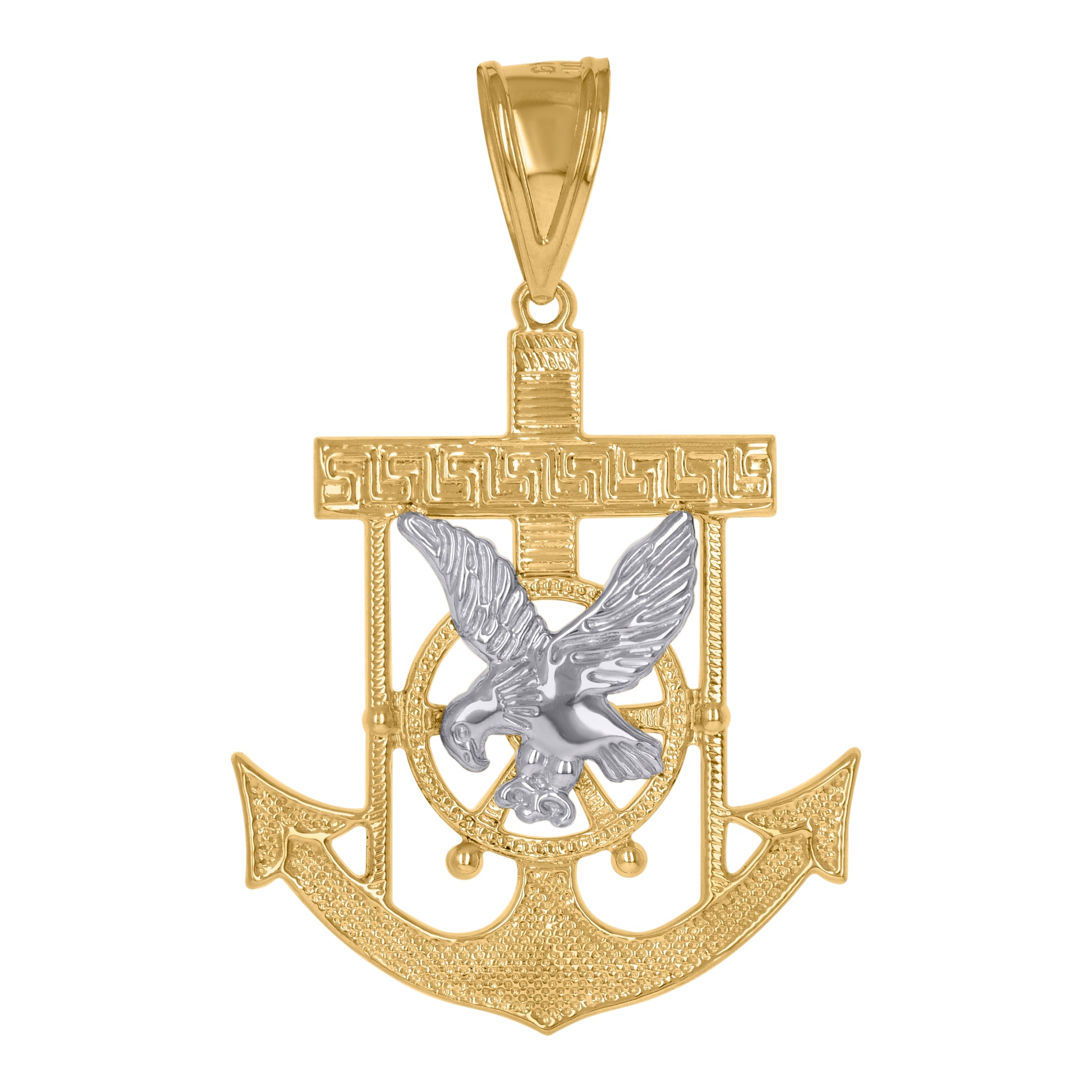 10kt Gold Two-Tone Diamond-Cut Mens Anchor Cross Eagle Religious Charm Pendant