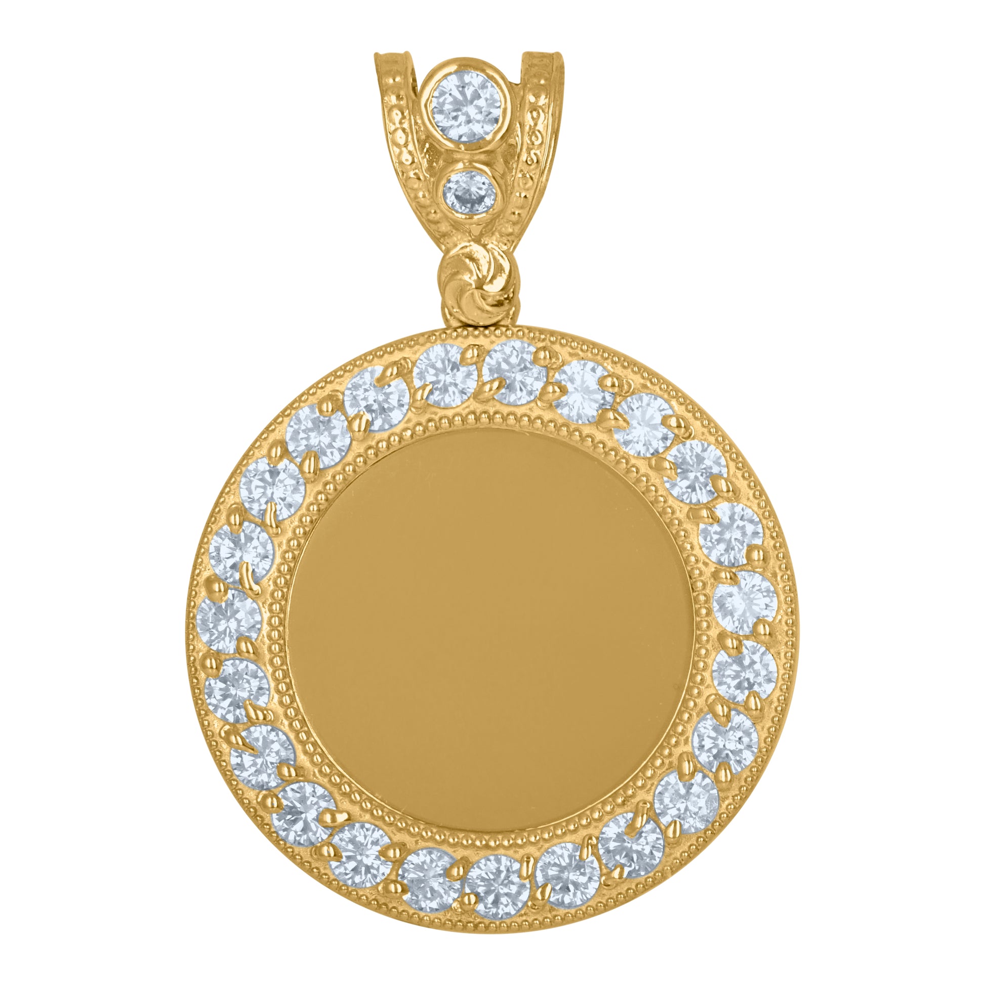 10kt Yellow Gold Mens Cubic Zirconia Medallion Fashion Charm Pendant