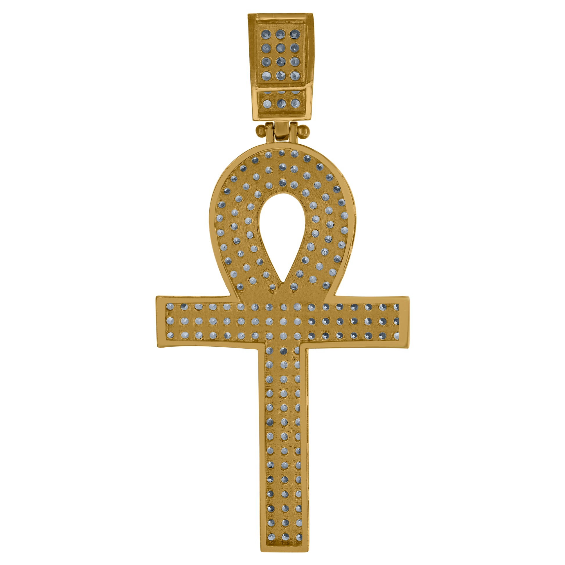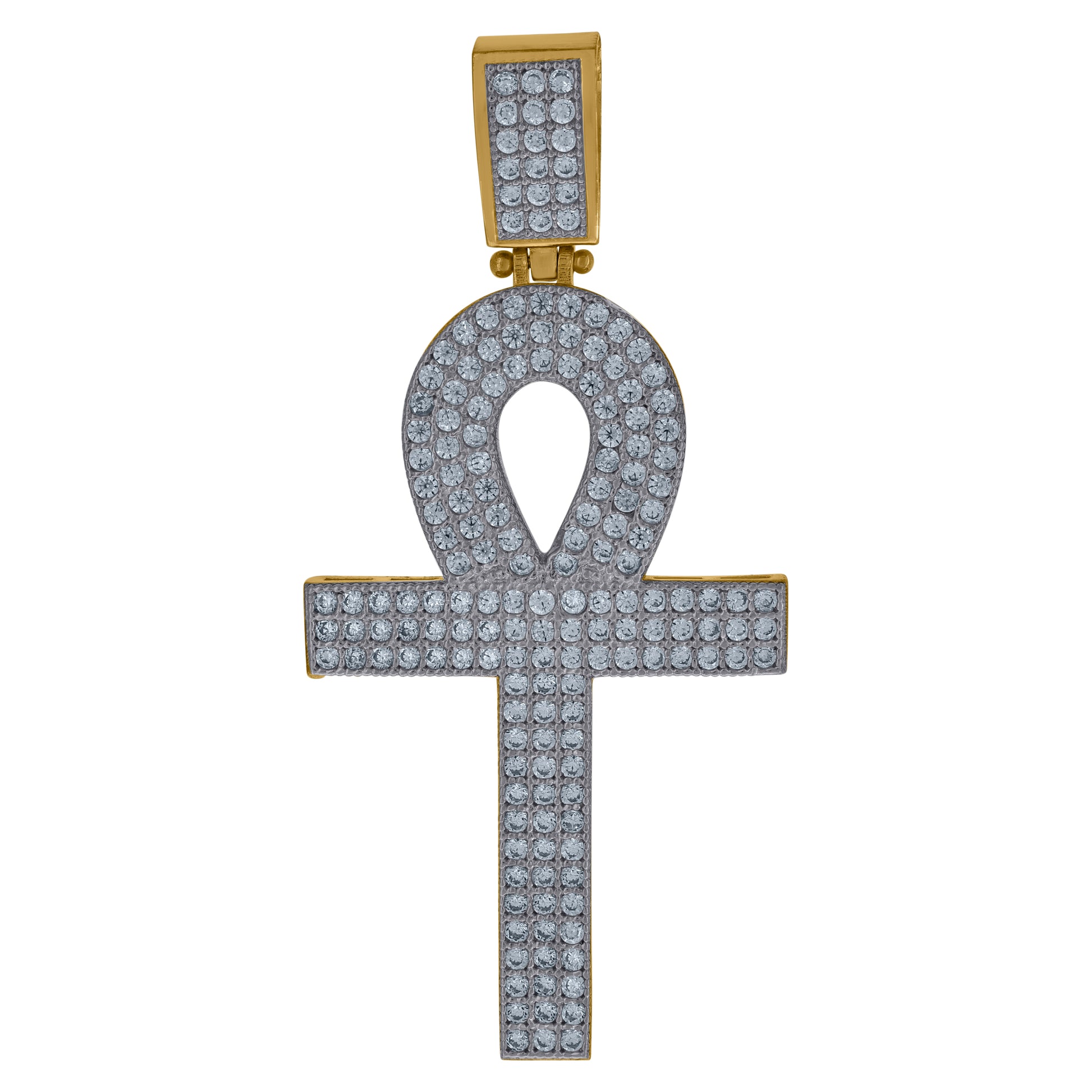 10kt Gold Two-Tone Cubic-Zirconia Mens Ankh Cross Religious Charm Pendant
