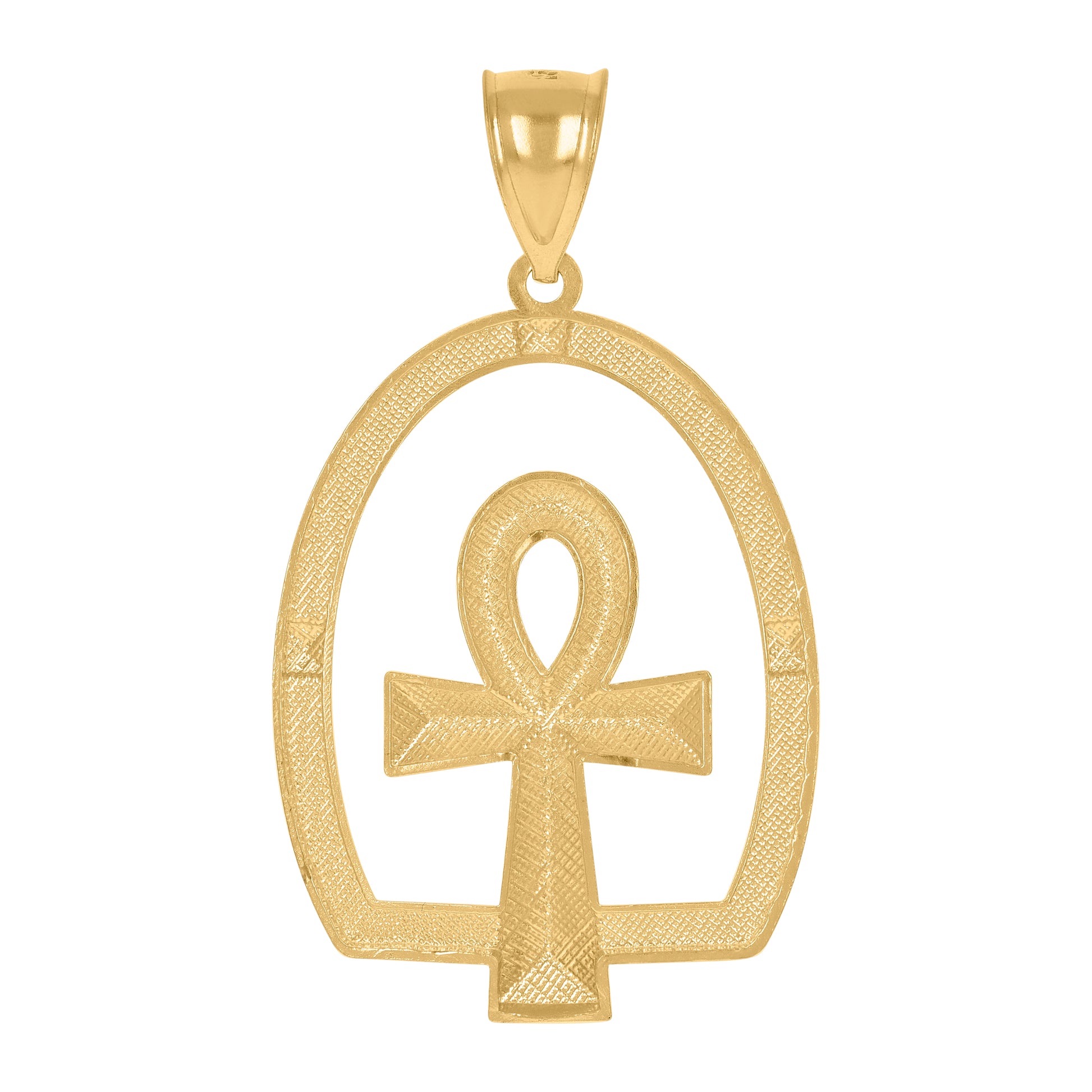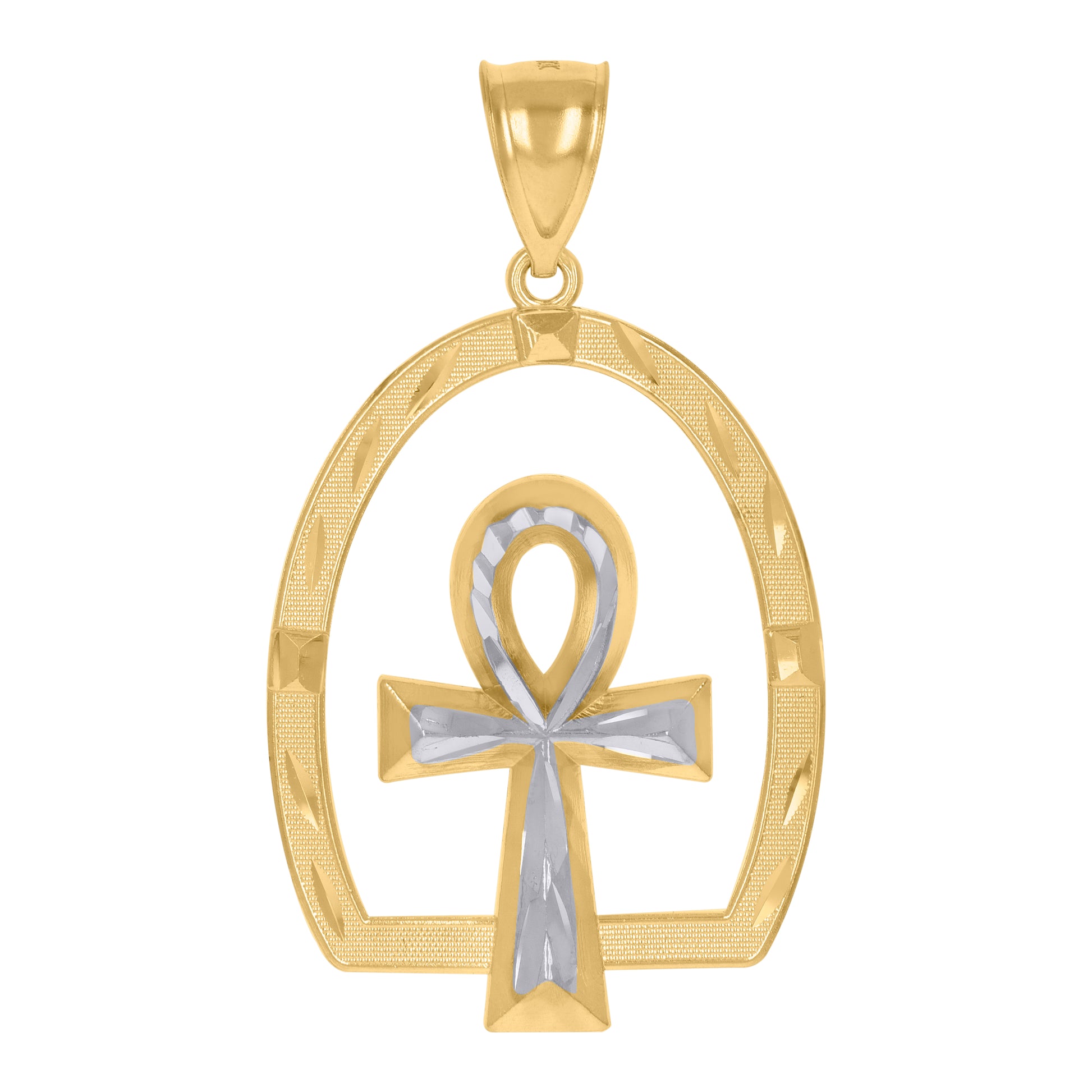 10kt Two-Tone Gold Mens Women Diamond-Cut Ankh Cross Religious Charm Pendant