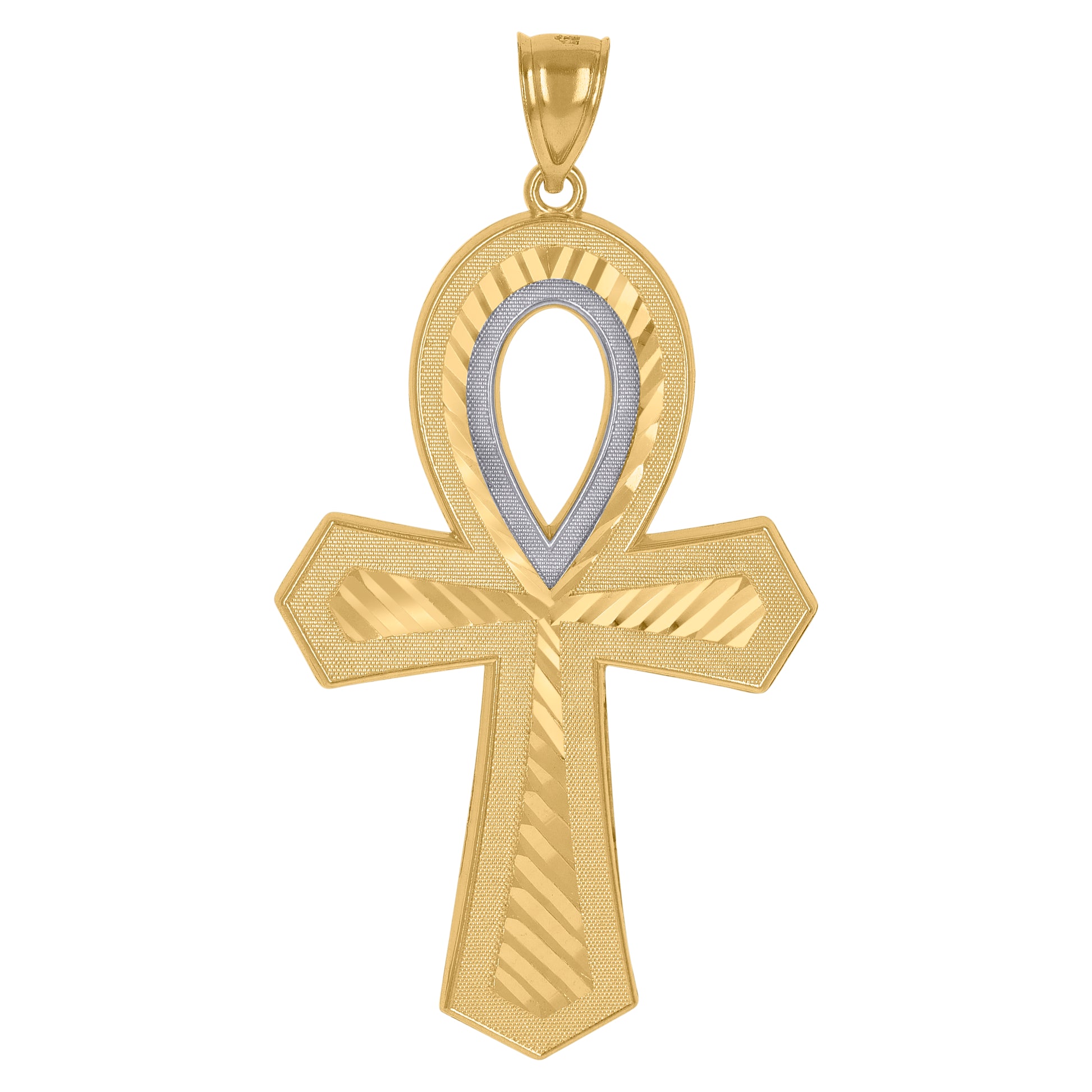 10kt Two-Tone Gold Mens Women Diamond-Cut Ankh Cross Religious Charm Pendant