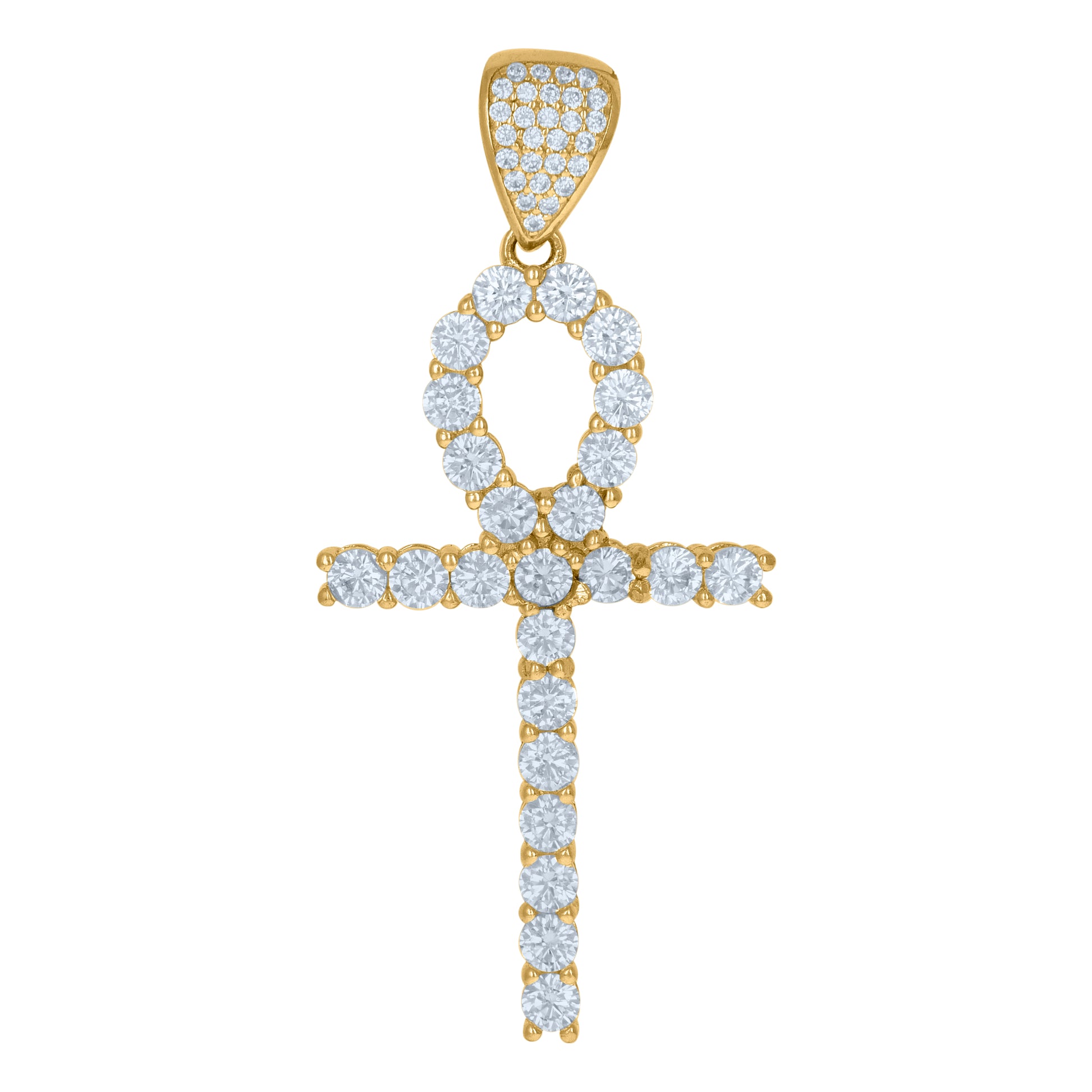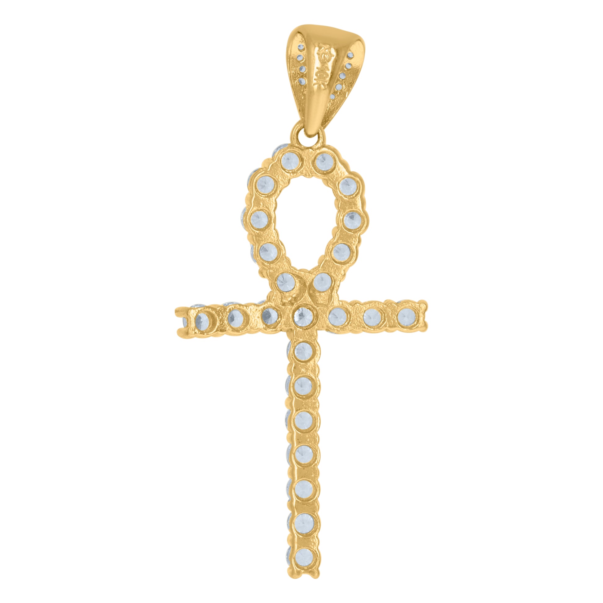 10kt Yellow Gold Cubic-Zirconia Mens Ankh Cross Religious Charm Pendant