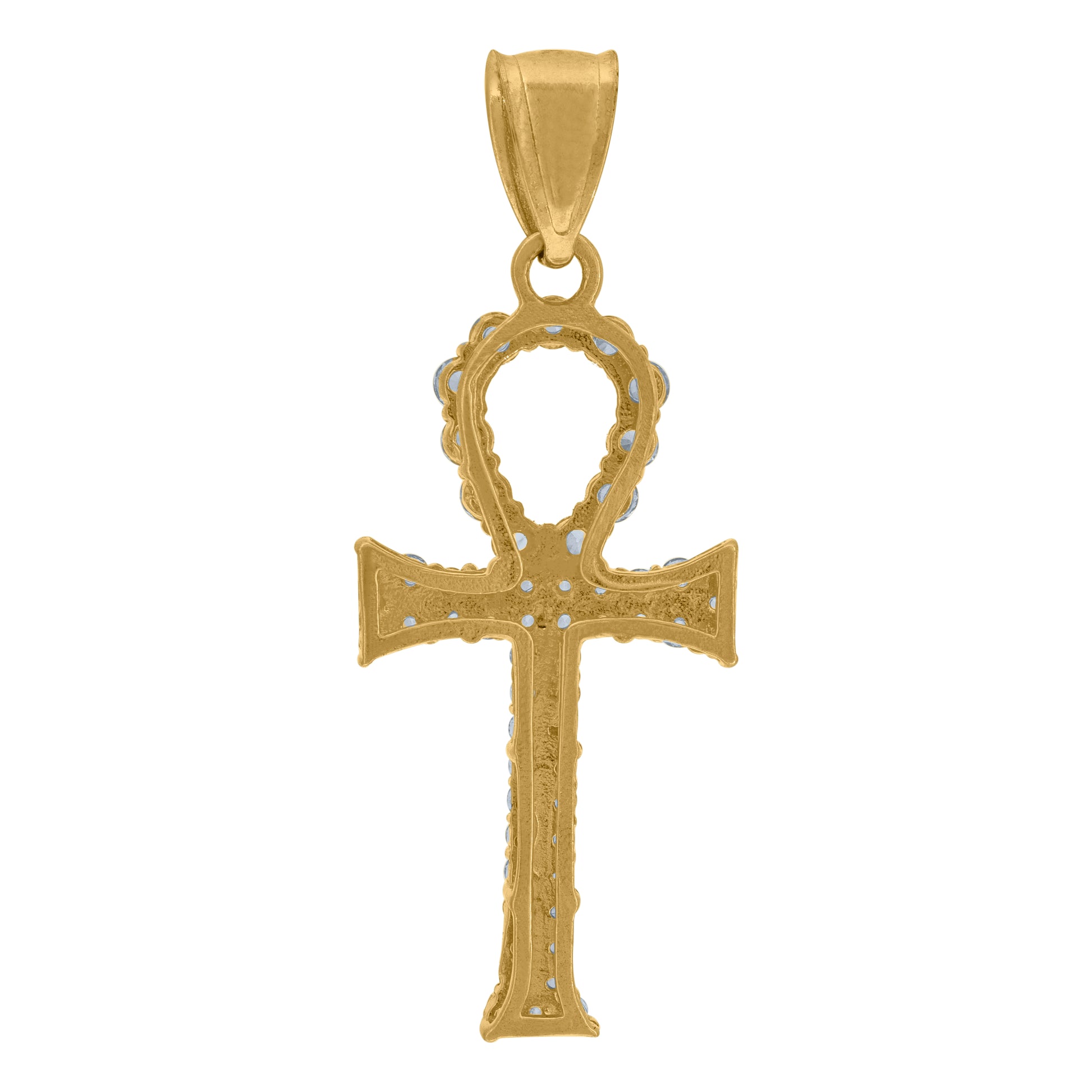 10kt Two-Tone Gold Cubic Zirconia Ankh Religious Charm Pendant