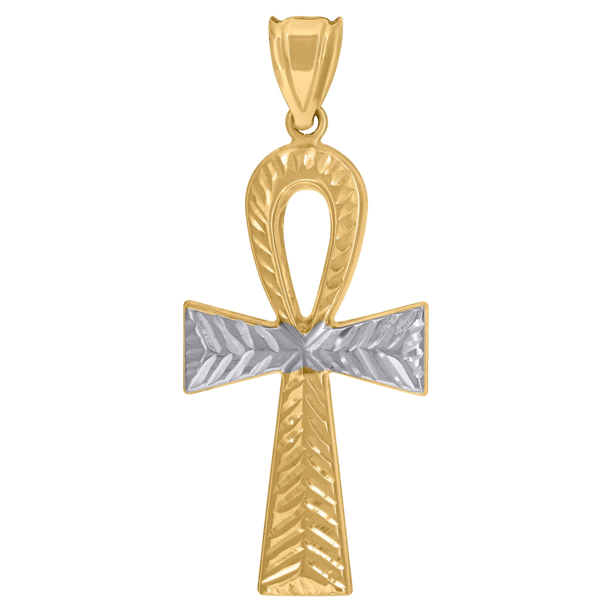 10kt Two-Tone Gold Mens Religious Ankh Cross Pendant