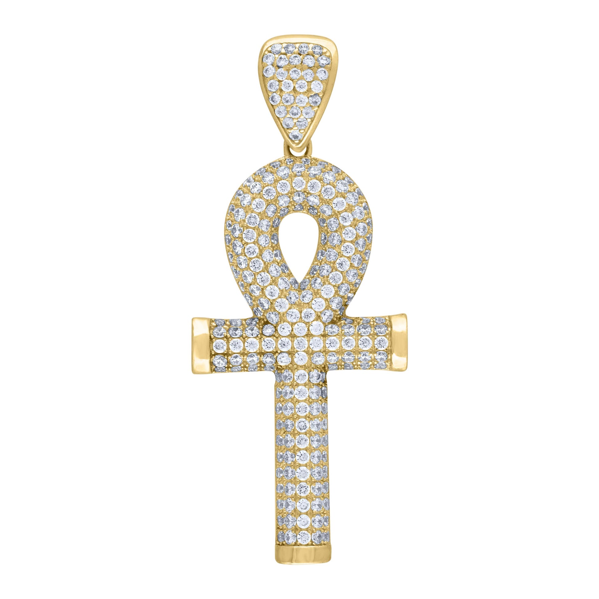 10kt Yellow Gold Mens Cubic-Zirconia Egyptian Ankh Cross Religious Charm Pendant