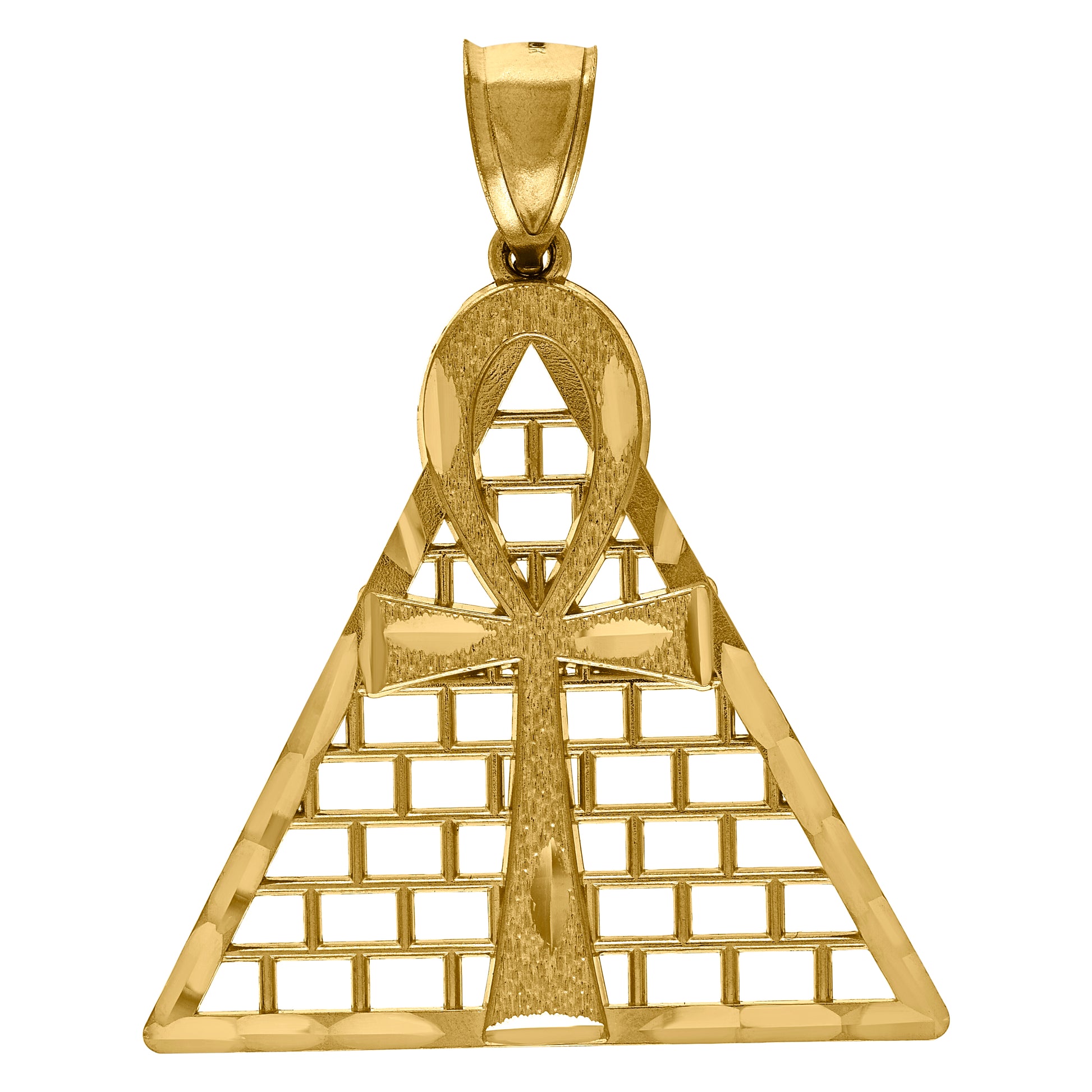 10kt Yellow Gold Diamond-Cut Ankh Pyramid Religious Charm Pendant