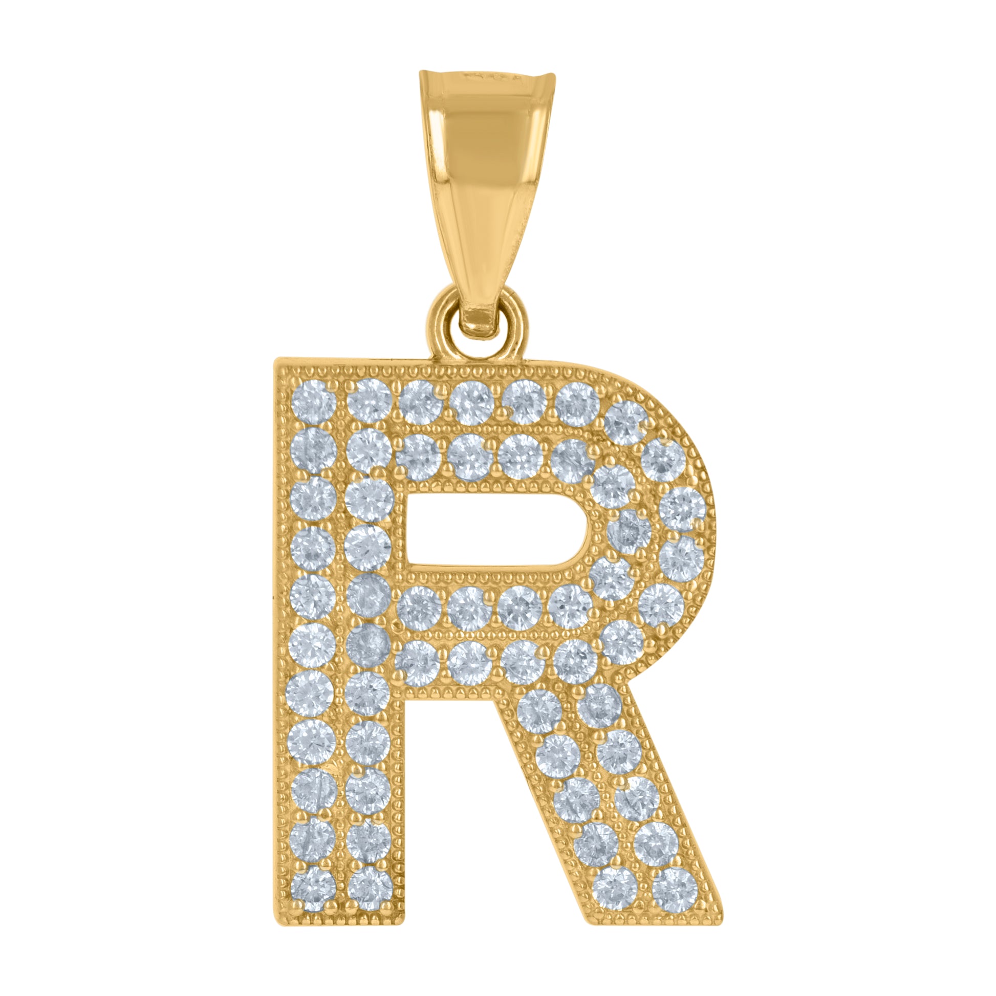 10kt Yellow Gold Womens Cubic Zirconia R Alphabet Initial Charm Pendant