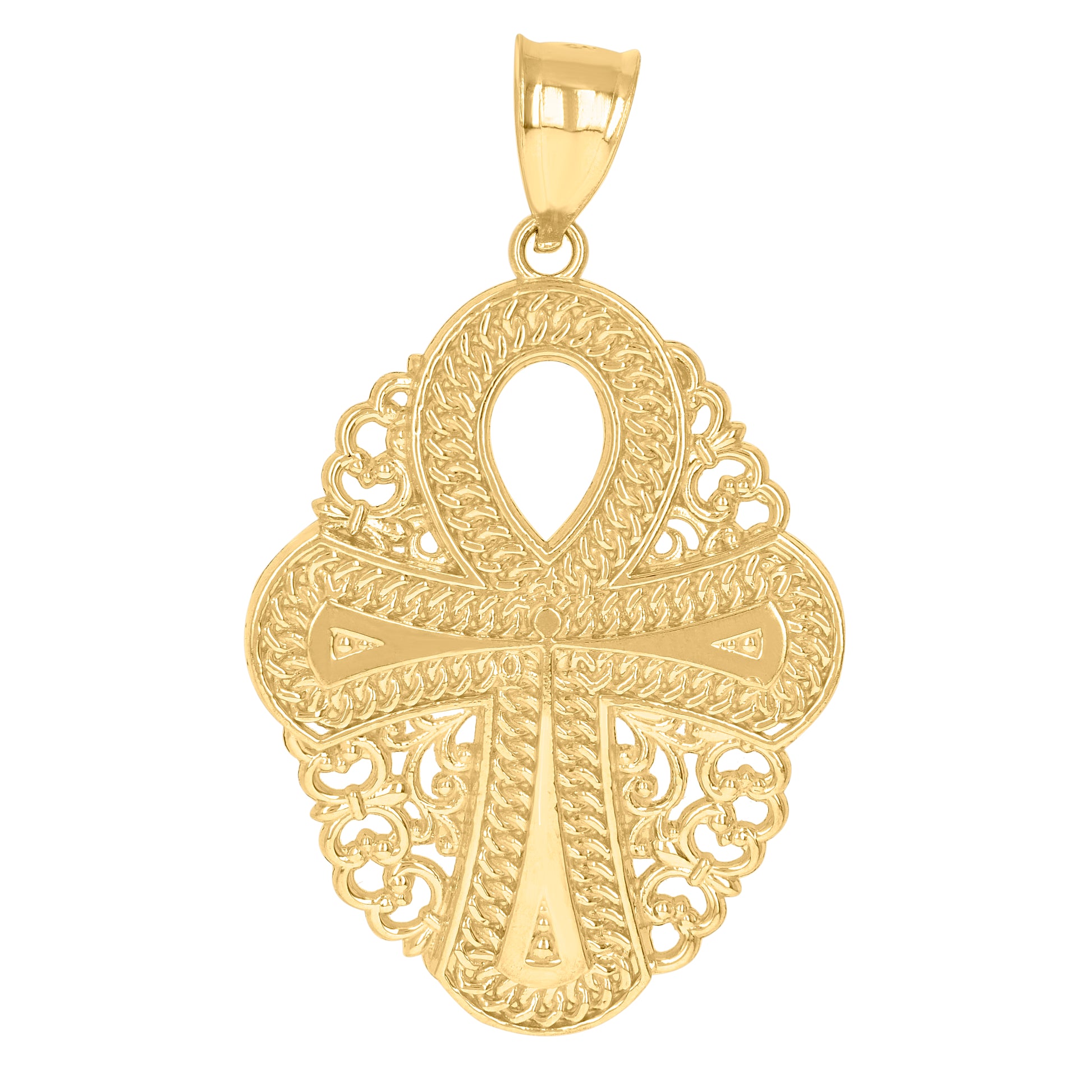 10kt Yellow Gold Mens Religious Egyptian Ankh Cross Charm Pendant