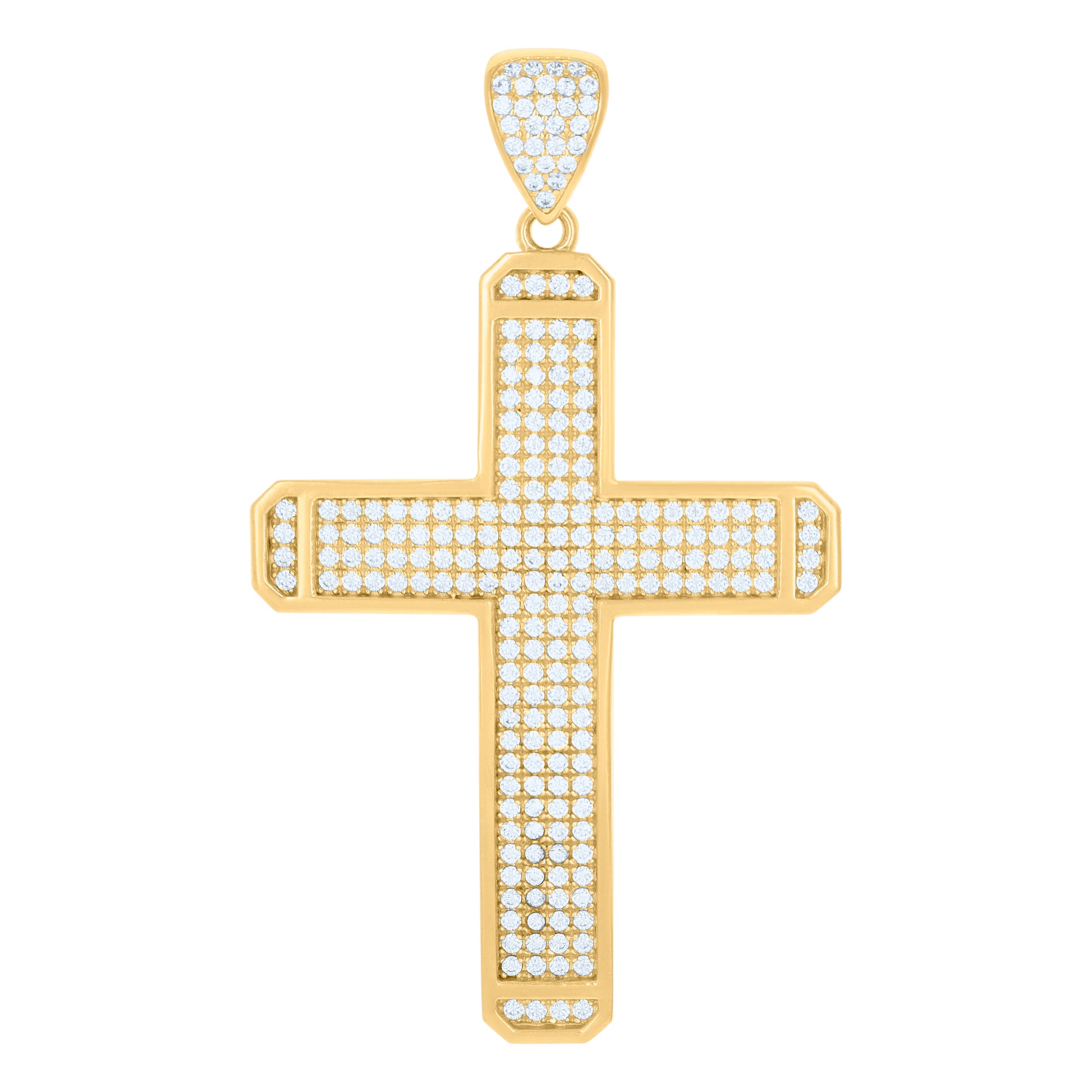 10kt Yellow Gold Unisex Cubic Zirconia Diamond-Cut Cross Religious Charm Pendant