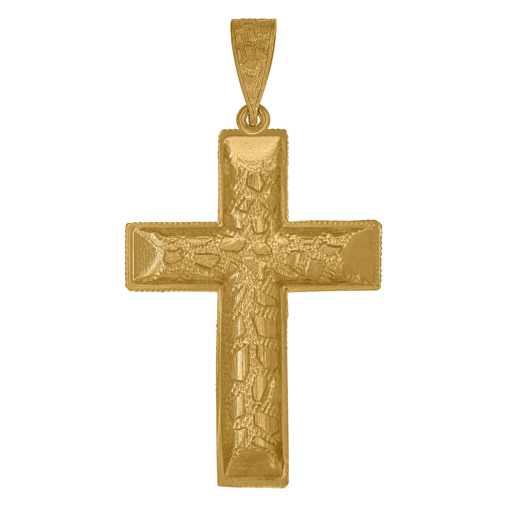 10kt Yellow Gold Diamond-Cut Nugget Mens Cross Religious Charm Pendant