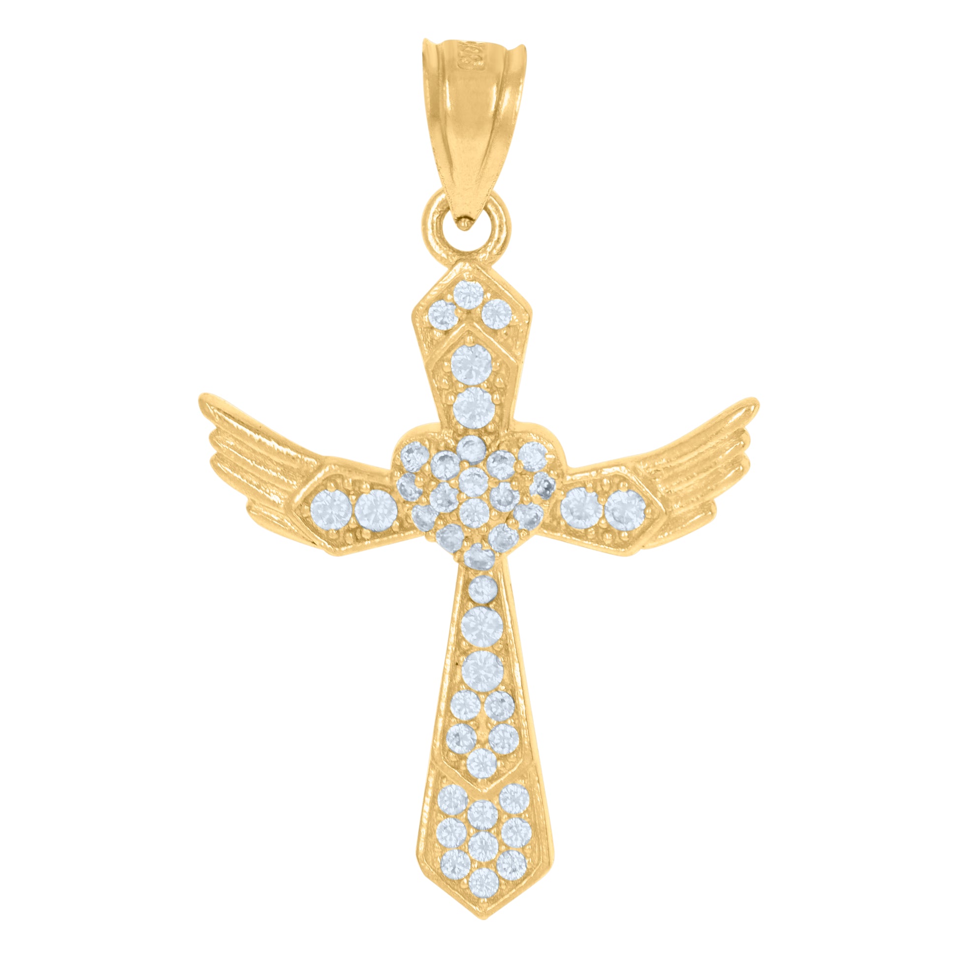 10kt Yellow Gold Mens Women Cubic Zirconia Heart Cross Religious Charm Pendant
