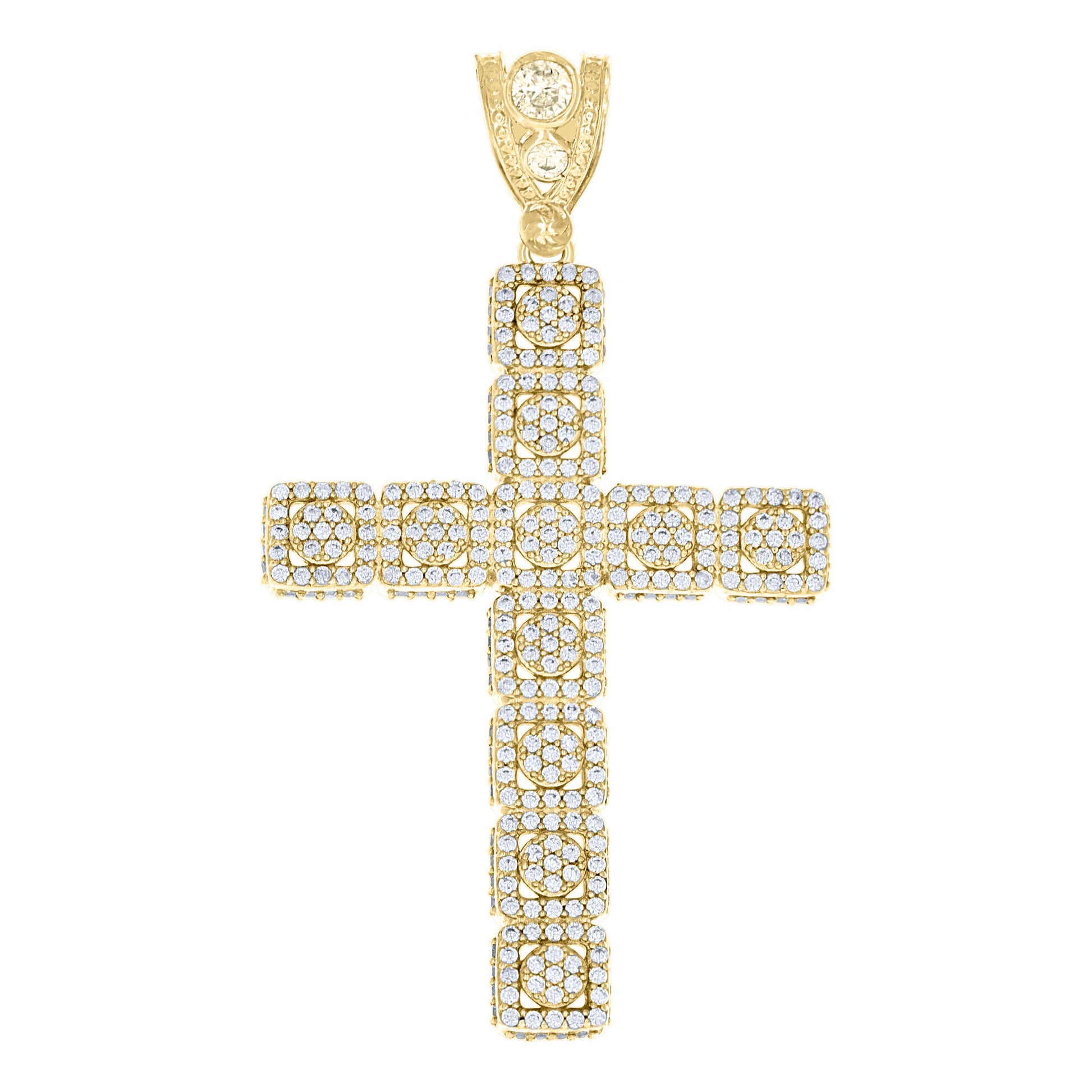 10kt Yellow Gold Mens Cubic Zirconia Cross Religious Charm Pendant