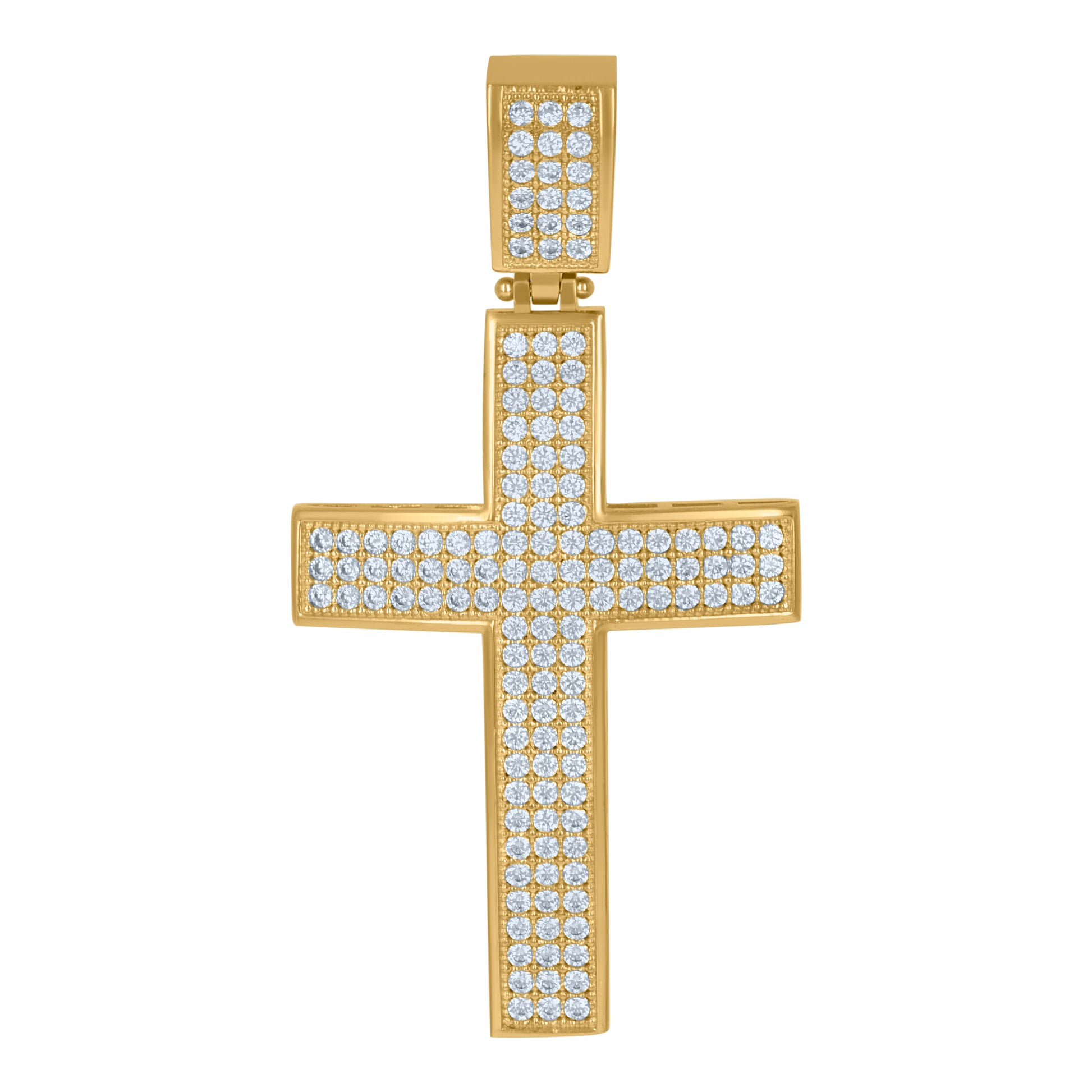 10kt Two-Tone Gold Unisex Cubic Zirconia Cross Religious Charm Pendant