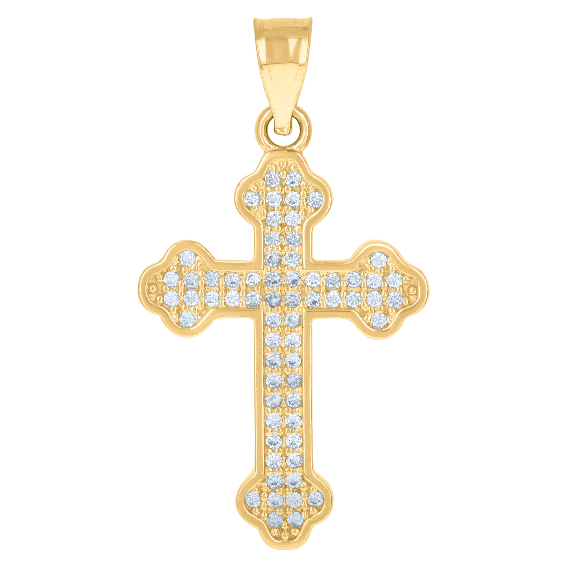 10kt Yellow Gold Mens Cubic-Zirconia Religious Budded Cross Charm Pendant