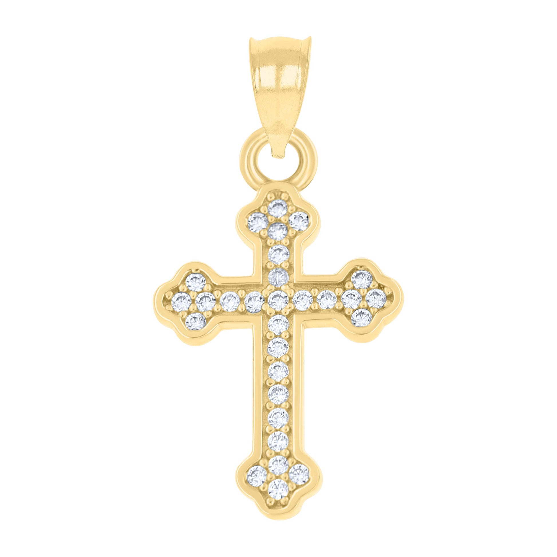 10kt Yellow Gold Mens Cubic-Zirconia Religious Budded Cross Charm Pendant