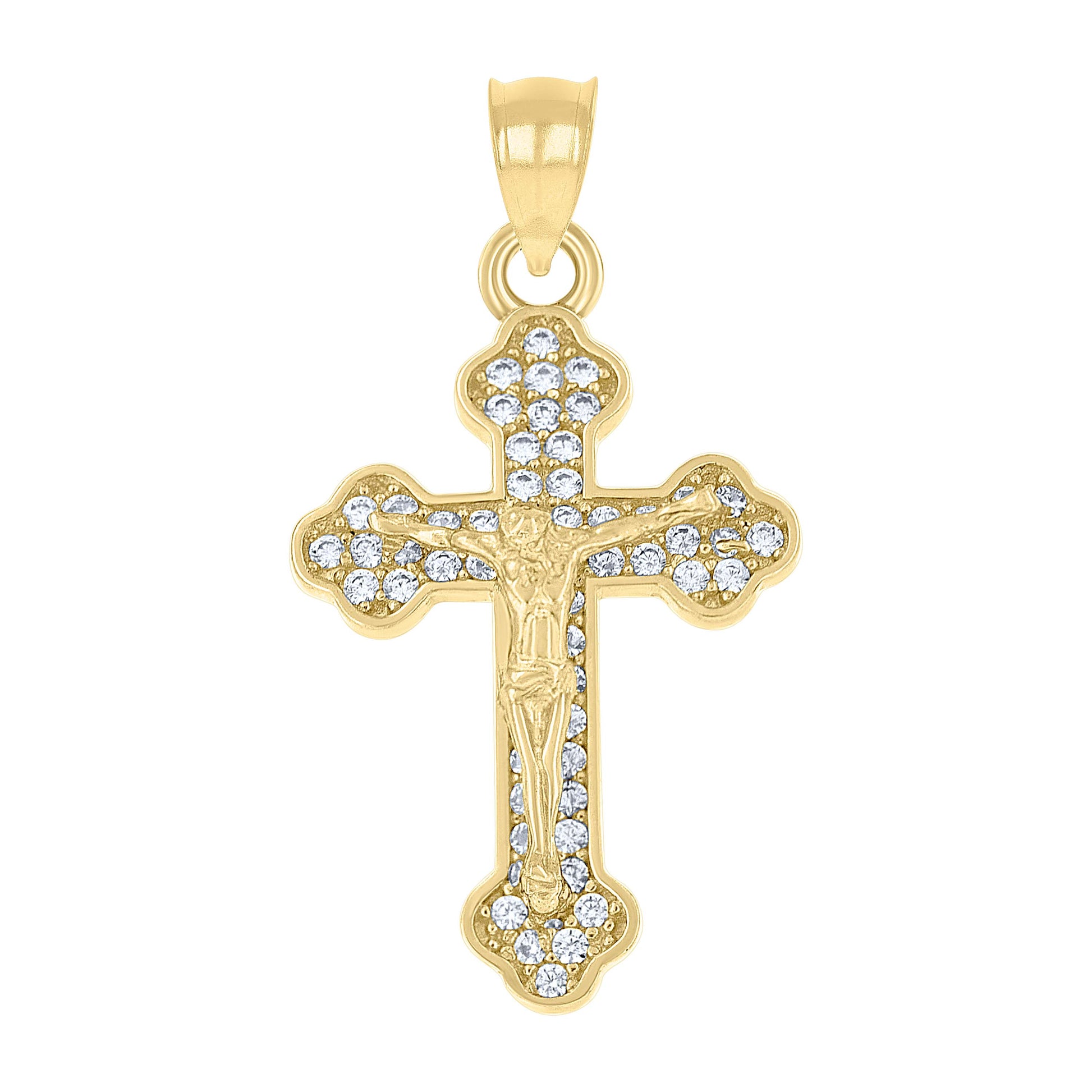10kt Yellow Gold Mens Cubic-Zirconia Religious Budded Cross Crucifix Charm Pendant