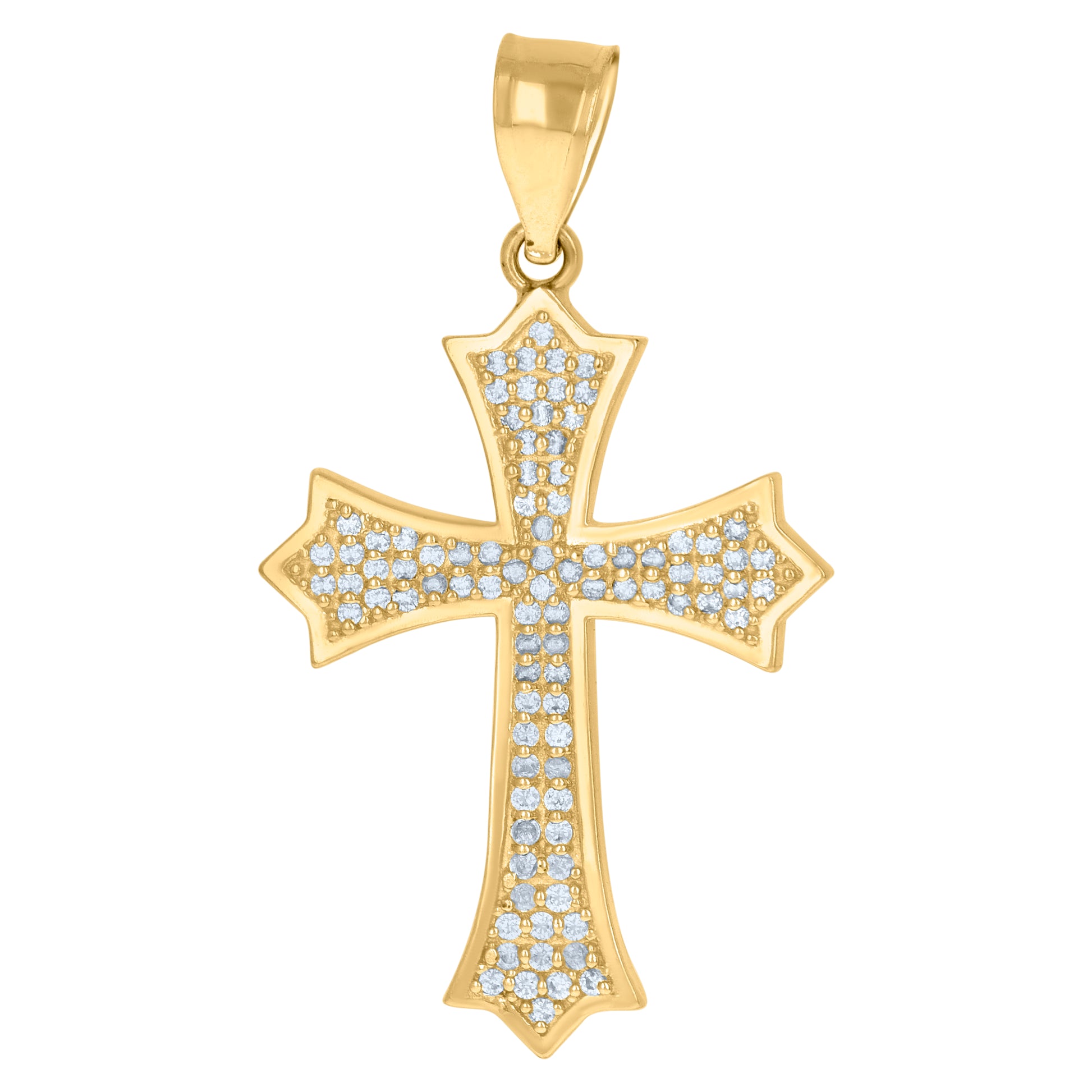 10kt Yellow Gold Mens Cubic-Zirconia Religious Fleur De Lis Cross Charm Pendant