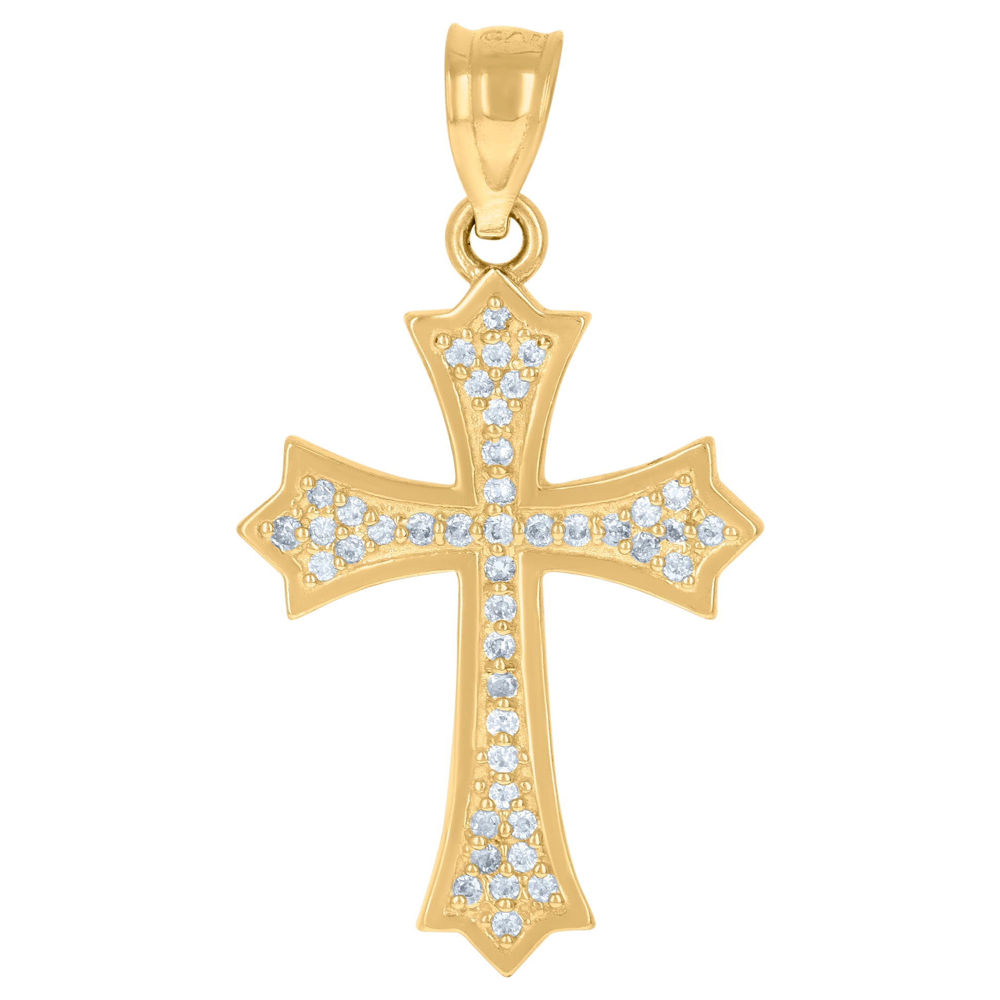 10kt Yellow Gold Mens Cubic-Zirconia Religious Fleur De Lis Cross Charm Pendant