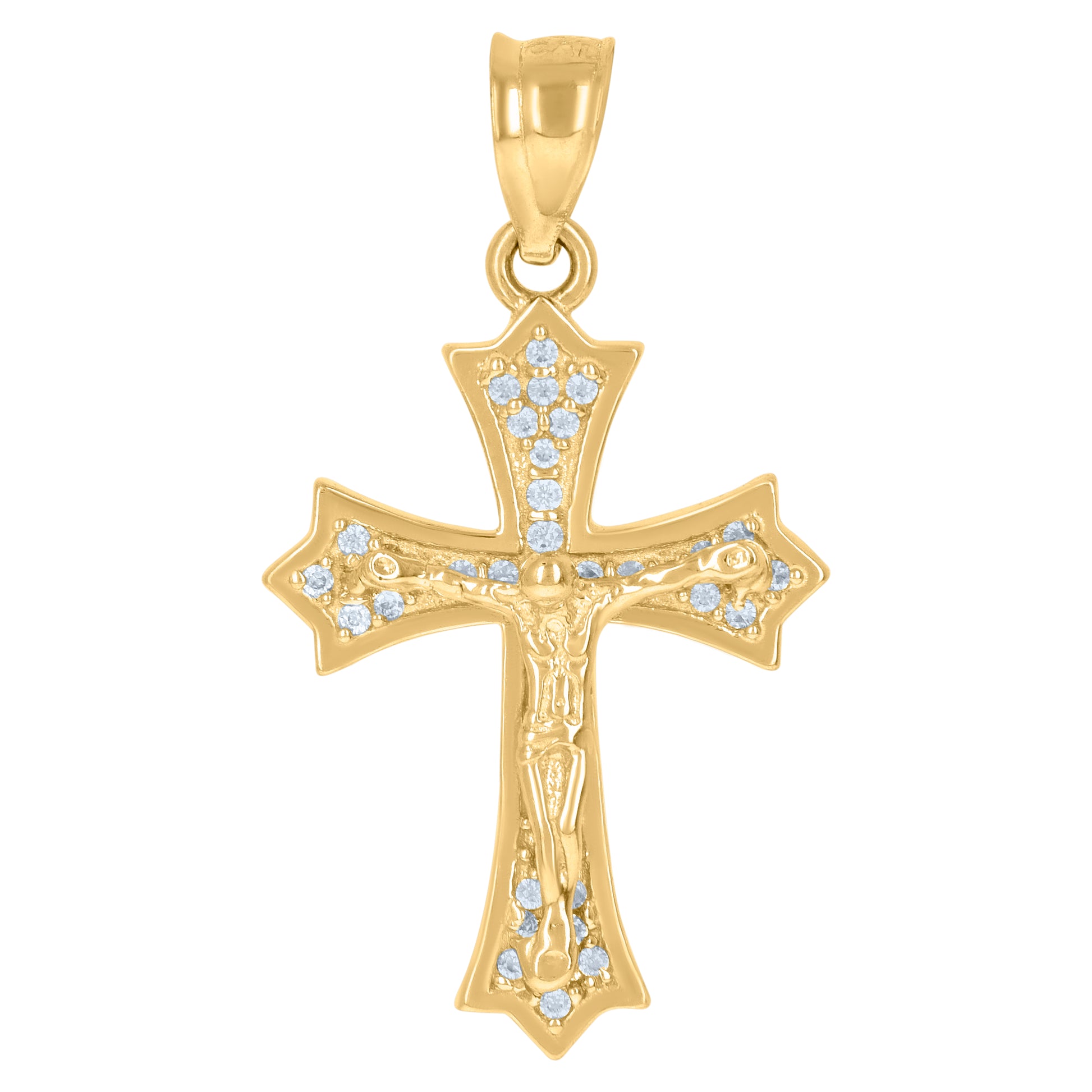 10kt Yellow Gold Mens Cubic-Zirconia Religious Fleur De Lis Crucifix Cross Charm Pendant