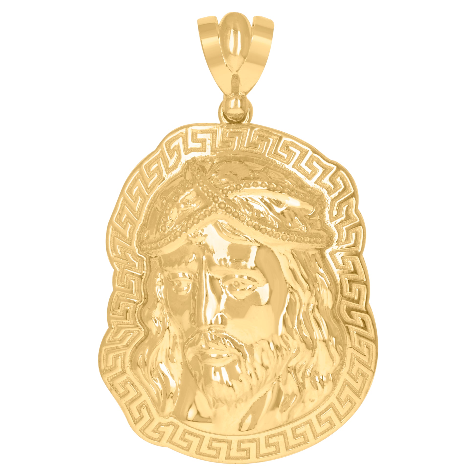 10kt Yellow Gold Mens Jesus Religious Greek Key Border Charm Pendant