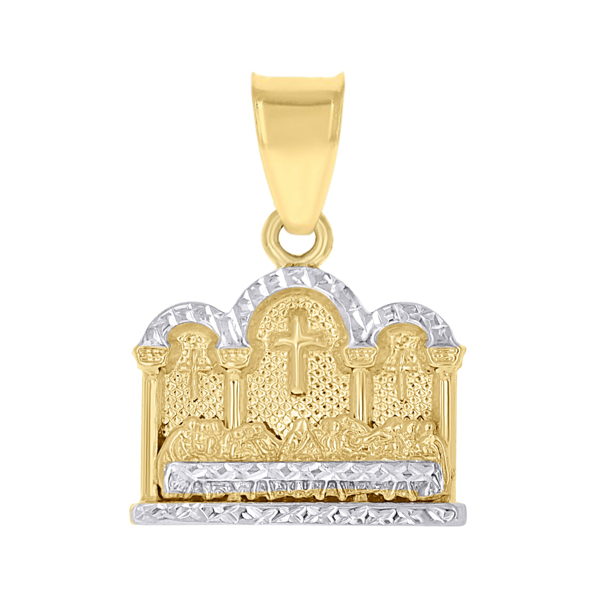 10kt Gold Two-Tone Diamond-Cut Mens Last Supper Religious Charm Pendant