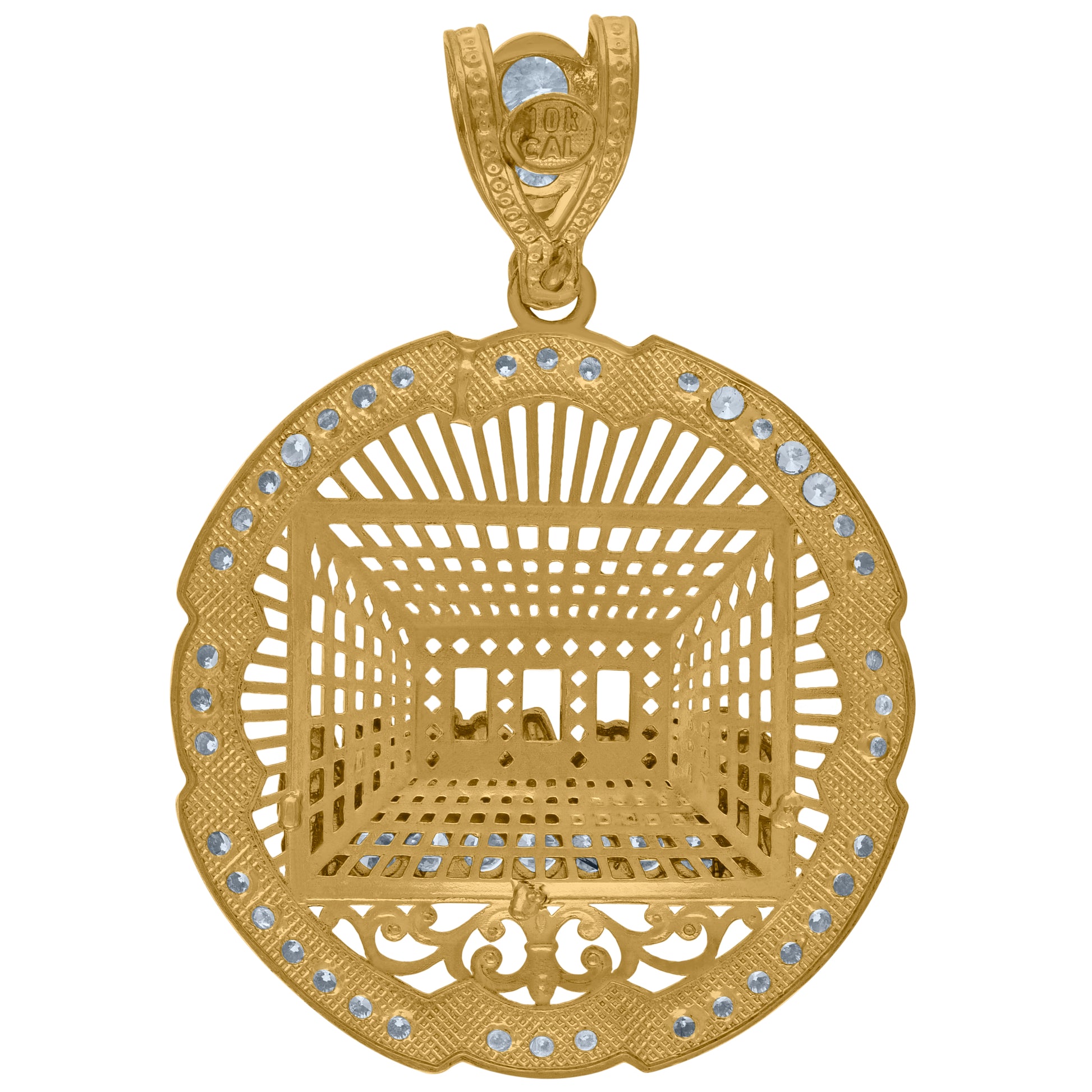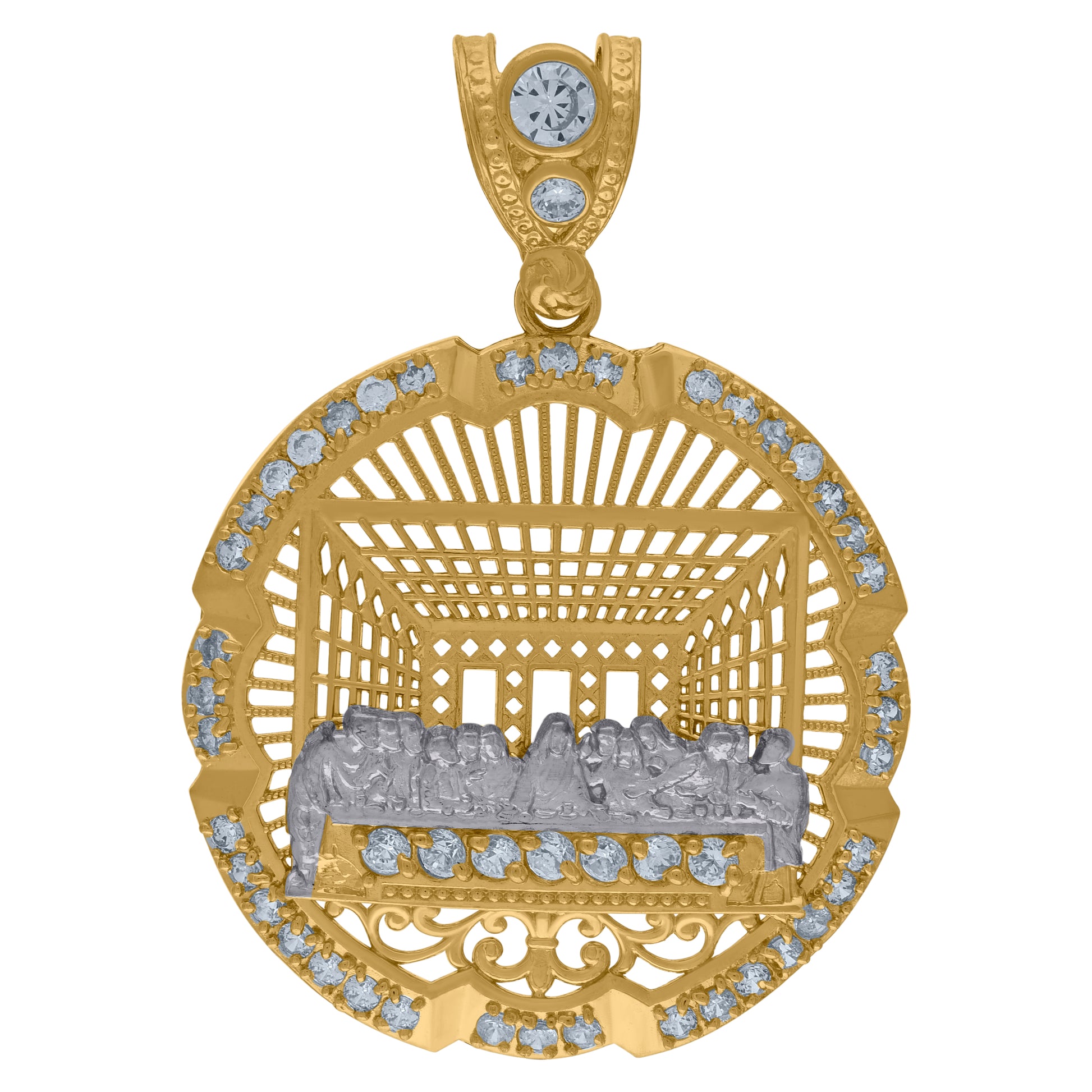 10kt Two-Tone Gold Mens Cubic Zirconia Last Supper Medallion Religious Charm Pendant