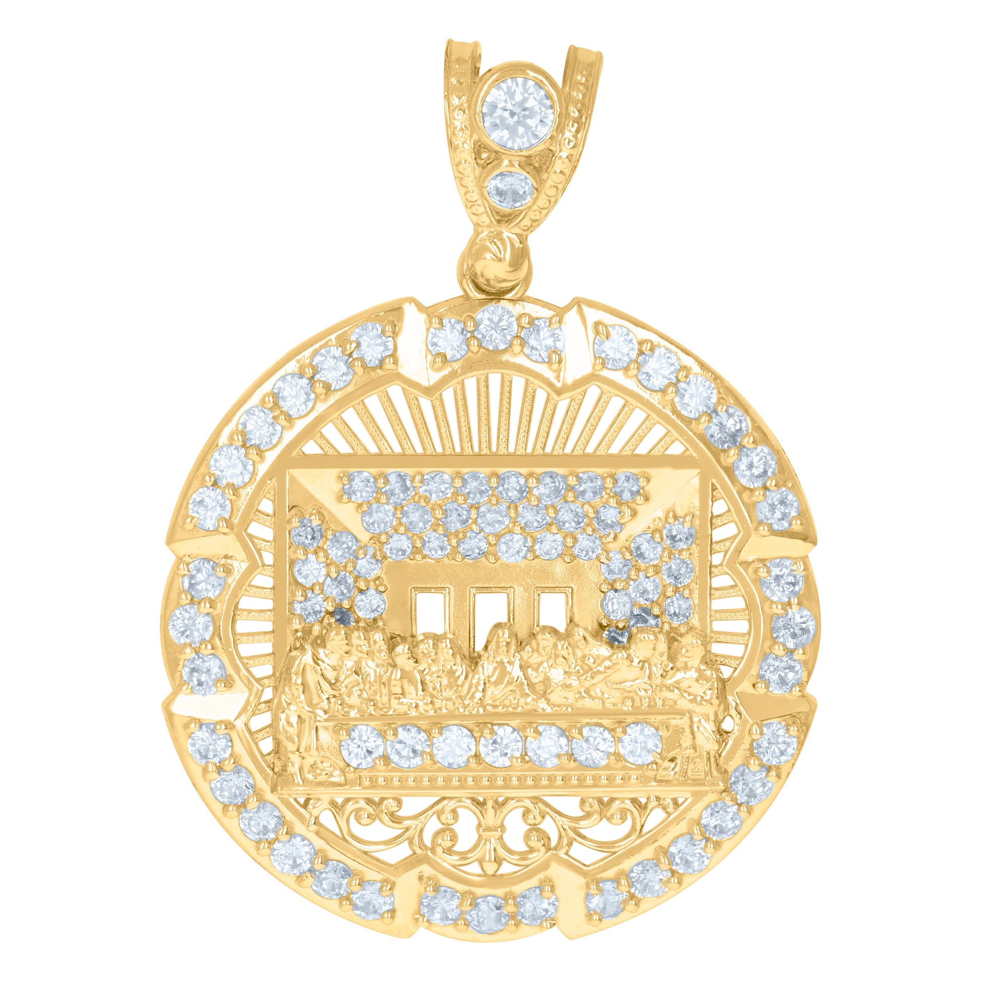 10kt Yellow Gold Mens Cubic-Zirconia Religious Last Supper Medallion Charm Pendant