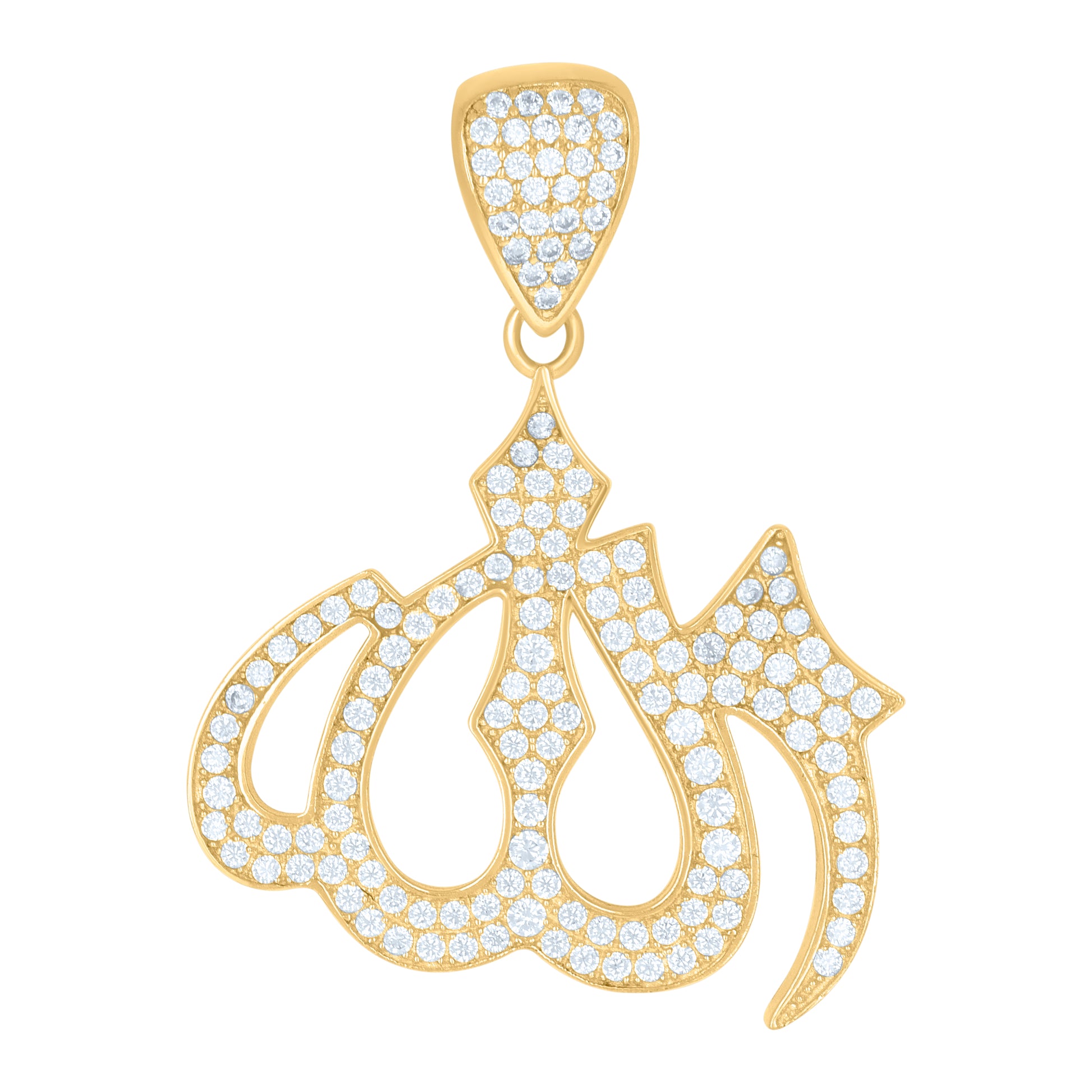 10kt Yellow Gold Mens Cubic Zirconia Symbol Allah Religious Charm Pendant