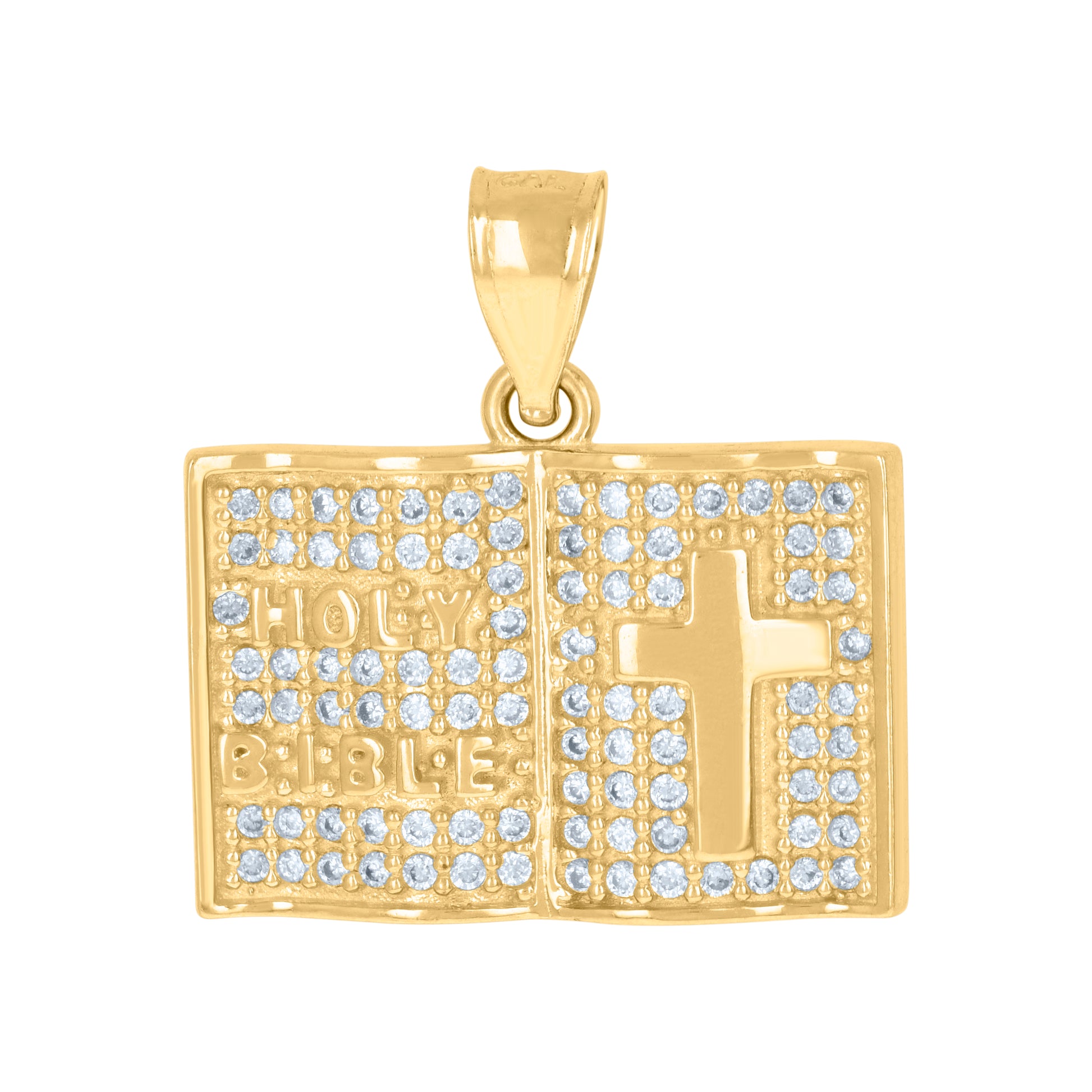 10kt Yellow Gold Mens Cubic-Zirconia Religious Symbols Holy Bible Charm Pendant