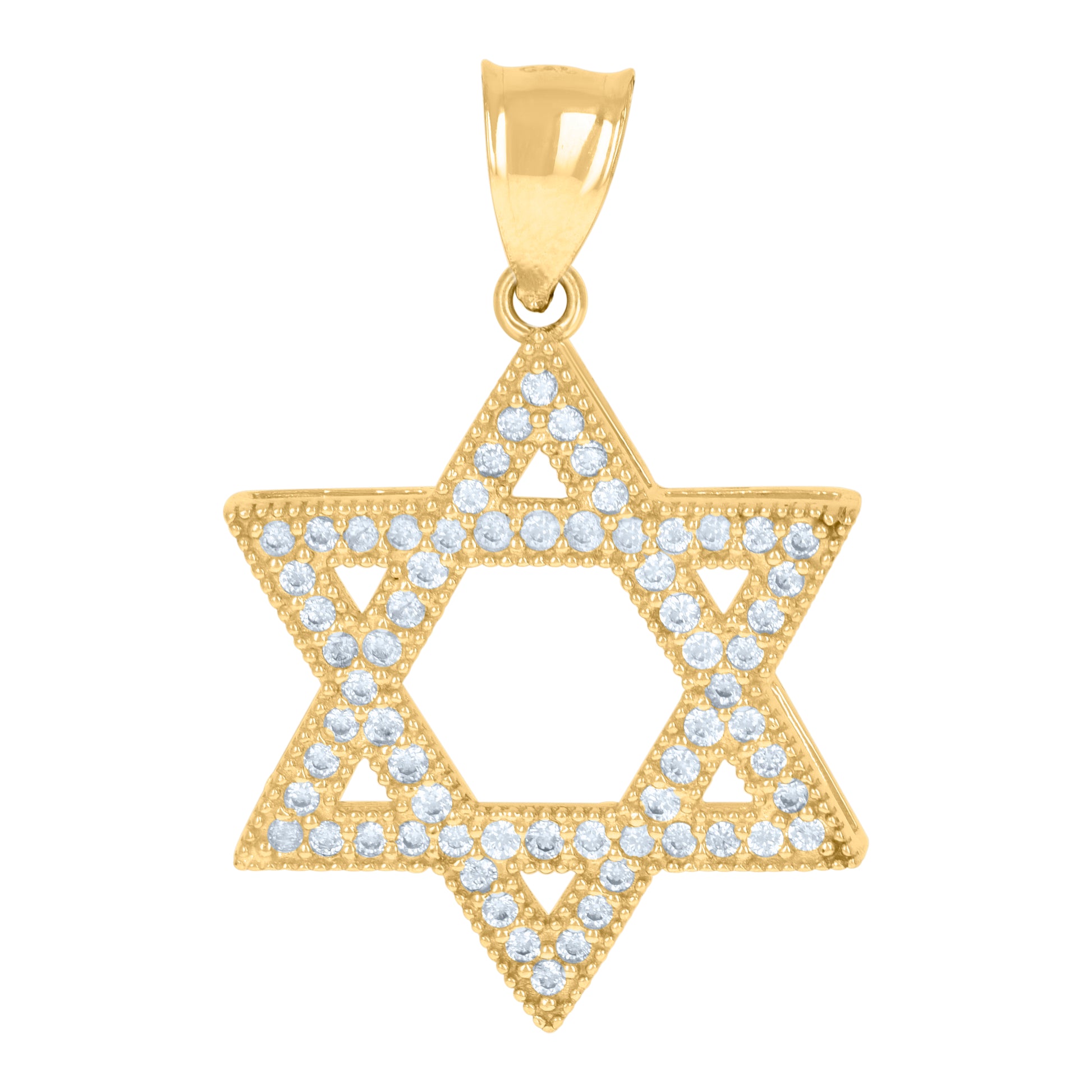 10kt Yellow Gold Mens Cubic-Zirconia Star Of David Religious Symbol Charm Pendant