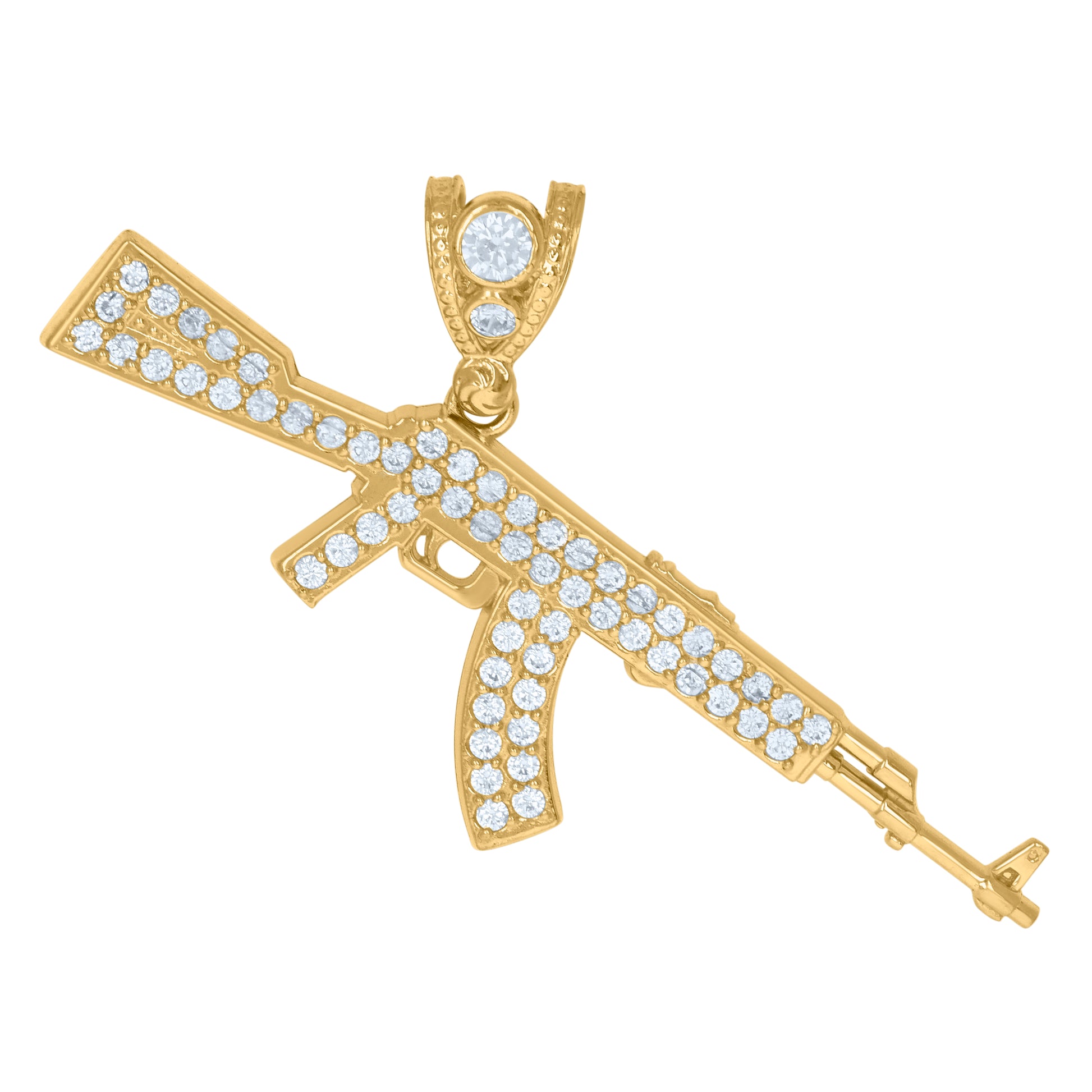 10kt Yellow Gold Mens Cubic-Zirconia Gun Charm Pendant