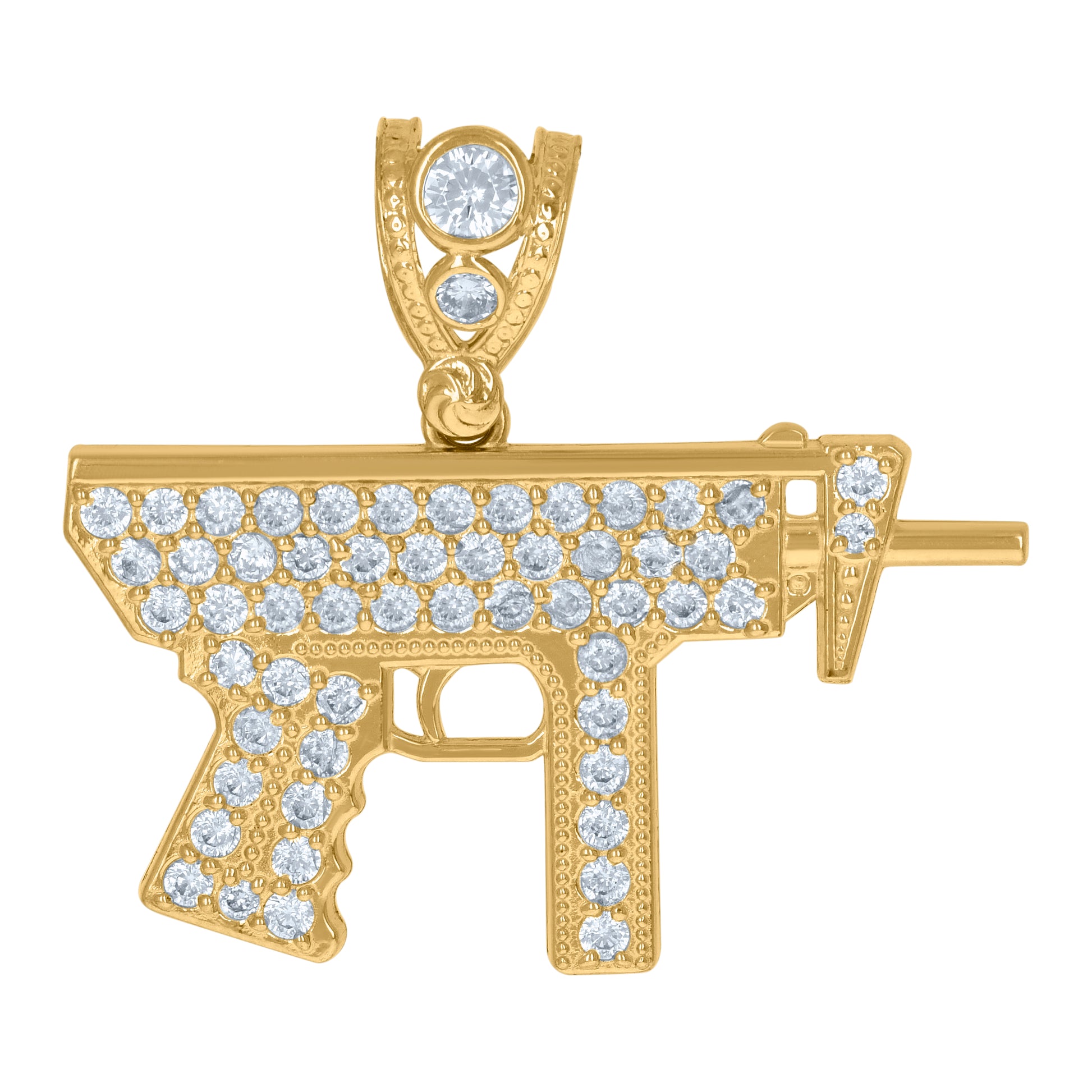 10kt Yellow Gold Mens Cubic-Zirconia Gun Charm Pendant