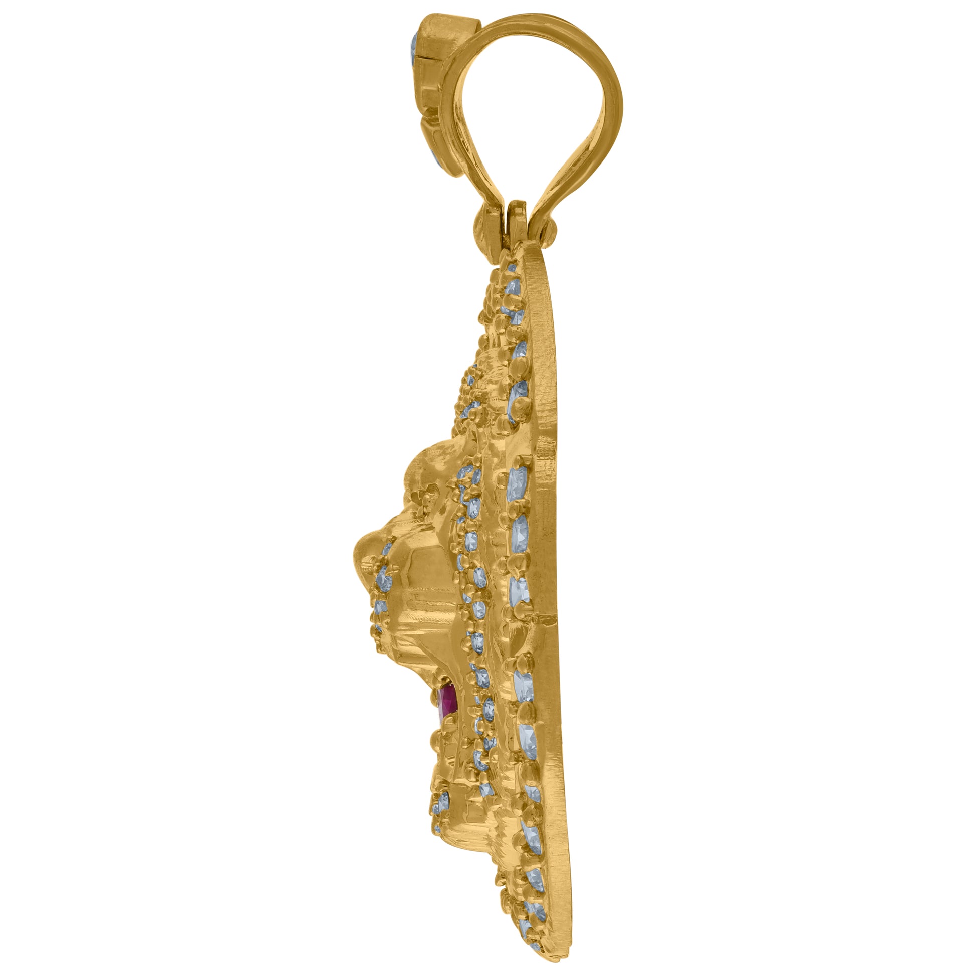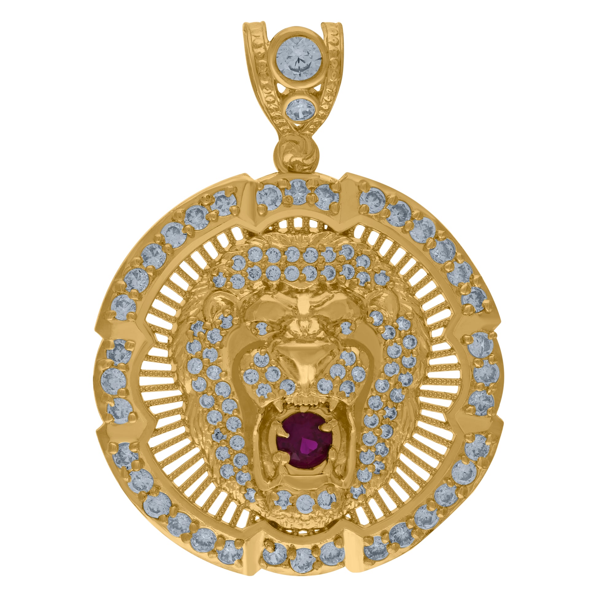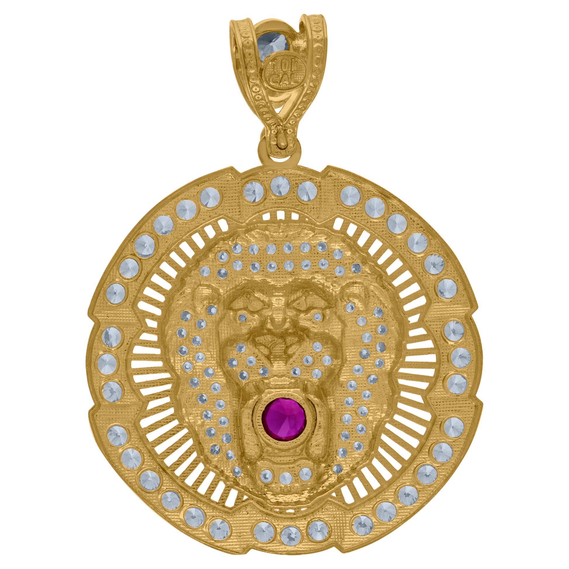 10kt Yellow Gold Mens White Pink Cubic Zirconia Zodiac Sign Leo Lion Head Charm Pendant