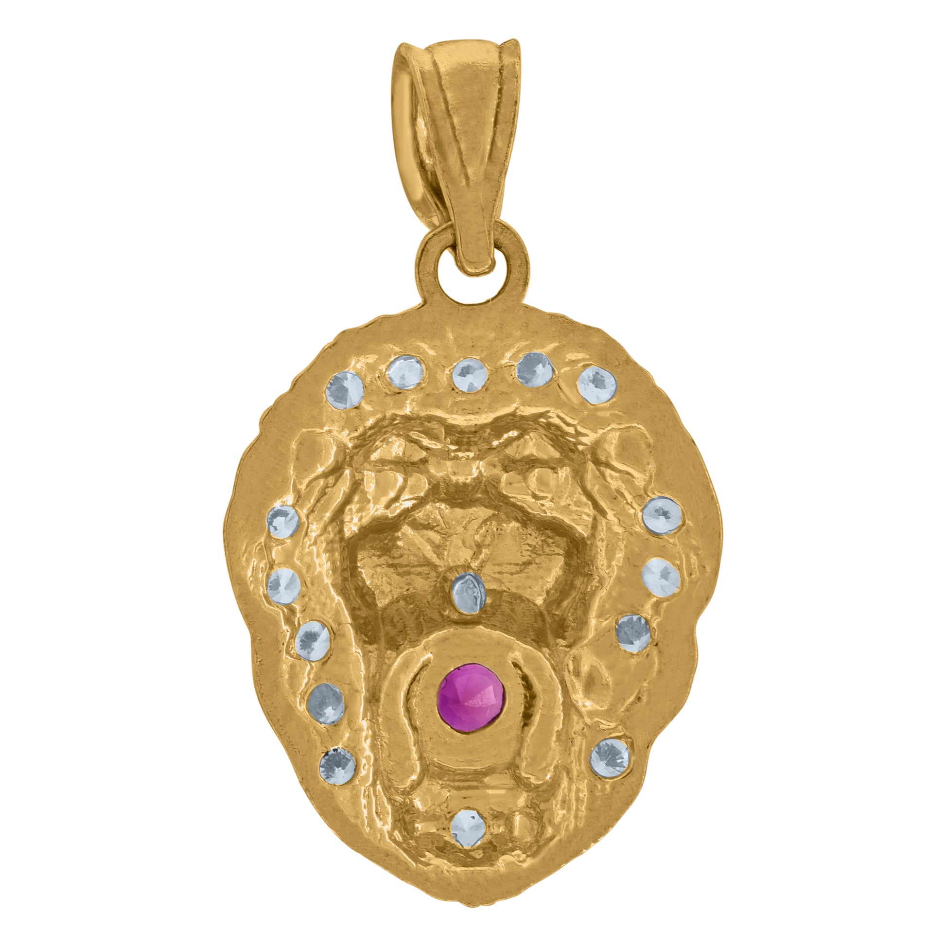 10kt Yellow Gold Mens White Pink Cubic Zirconia Zodiac Sign Leo Lion Head Charm Pendant