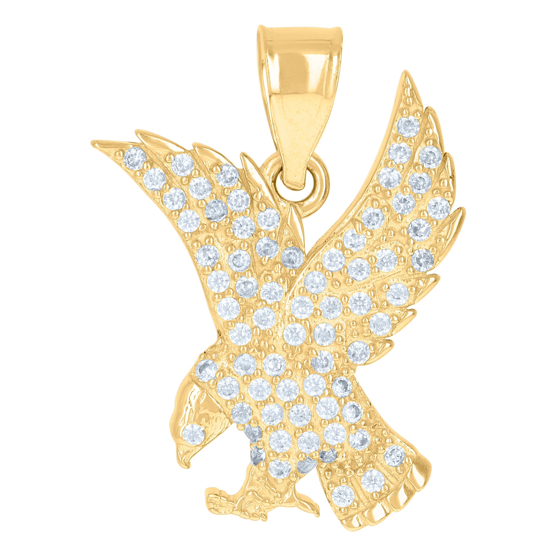 10kt Yellow Gold Mens Cubic-Zirconia Wildlife Bird Eagle Patriotism Charm Pendant