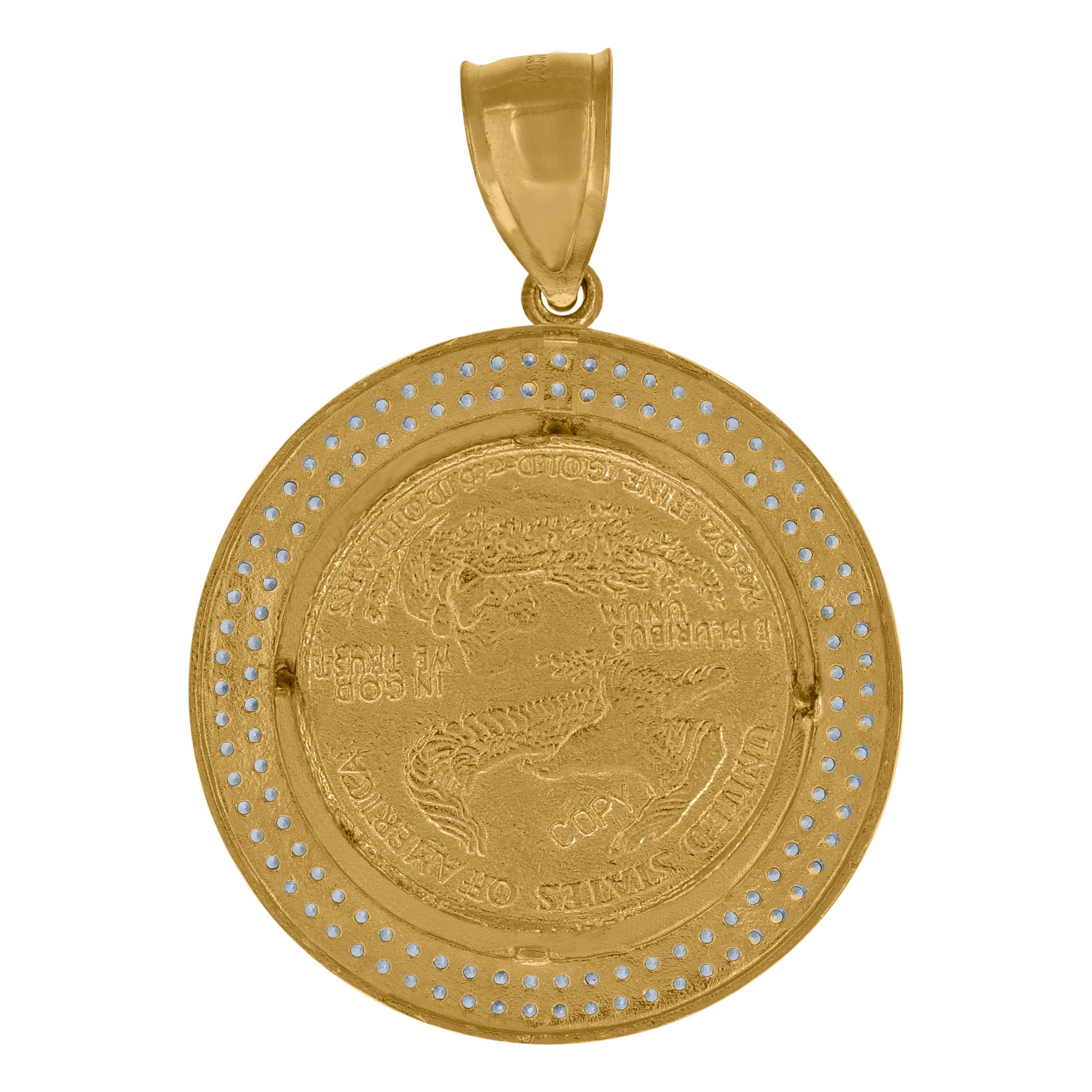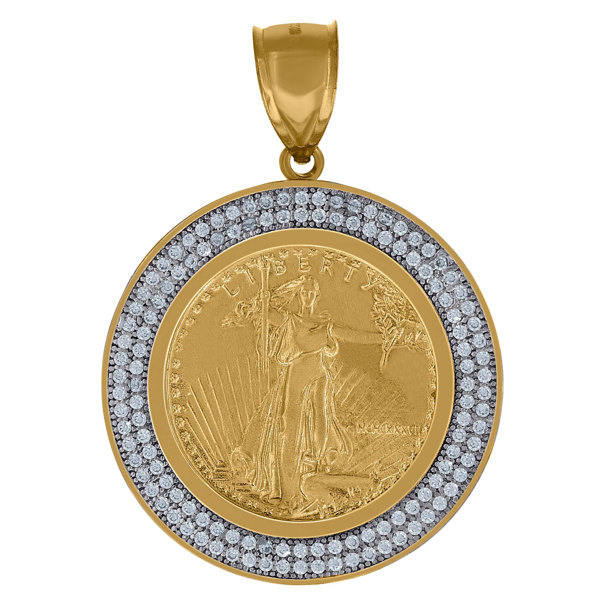 10kt Gold Two-Tone Cubic-Zirconia Mens Lady Liberty Medallion Charm Pendant