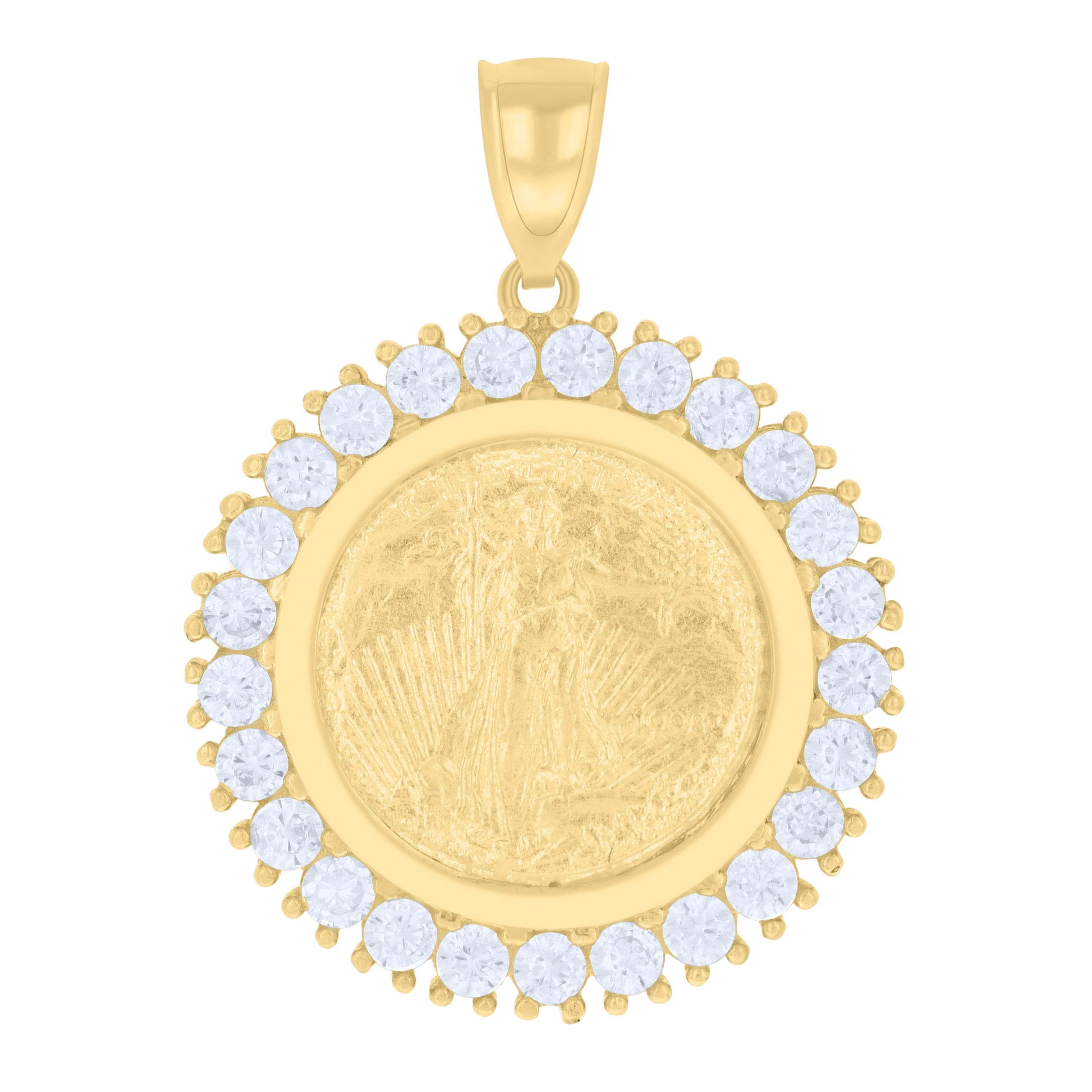 10kt Yellow Gold Cubic-Zirconia Mens Lady Liberty Medallion Charm Pendant