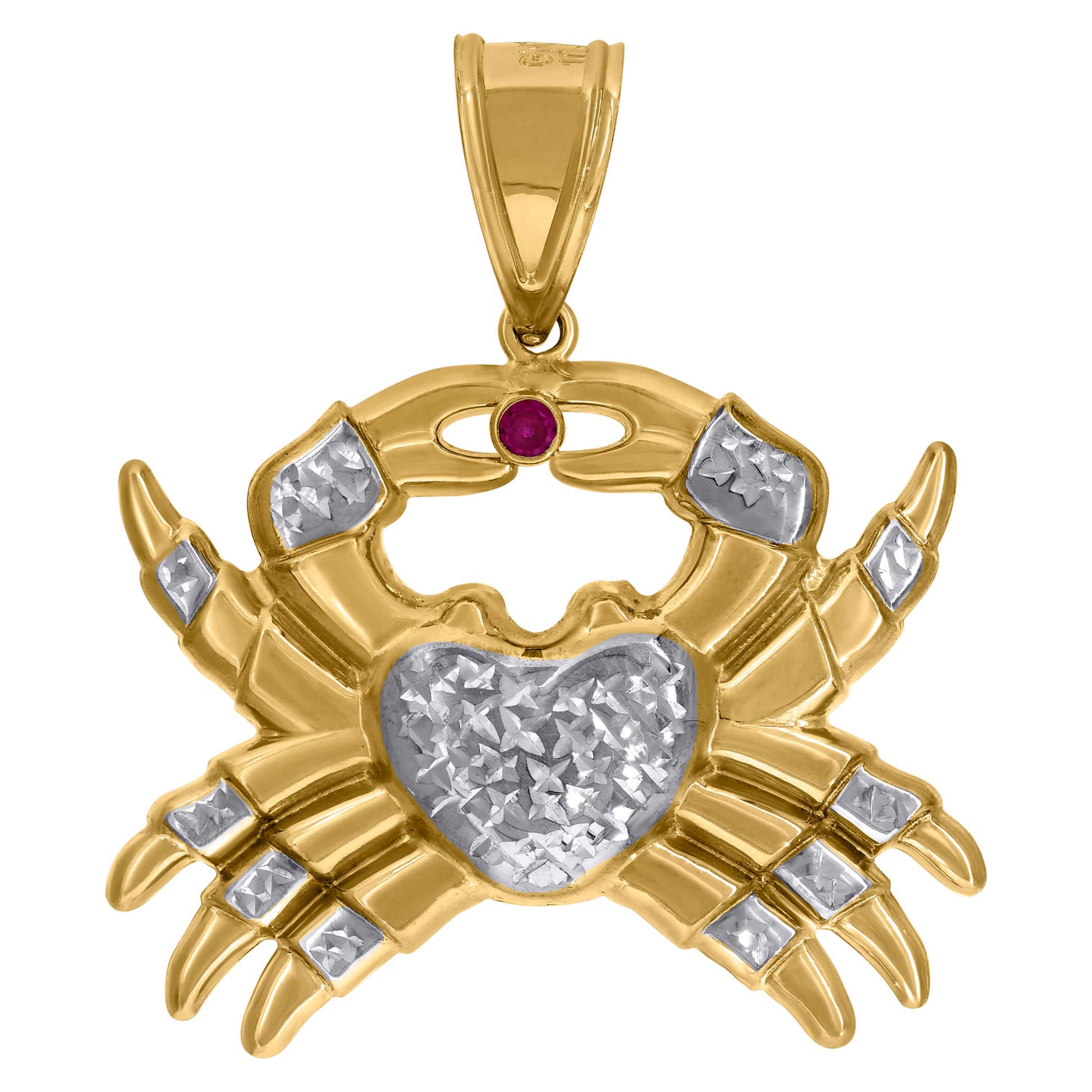 10kt Two-Tone Gold Men Cubic-Zirconia Zodiac Sign Cancer Pendant