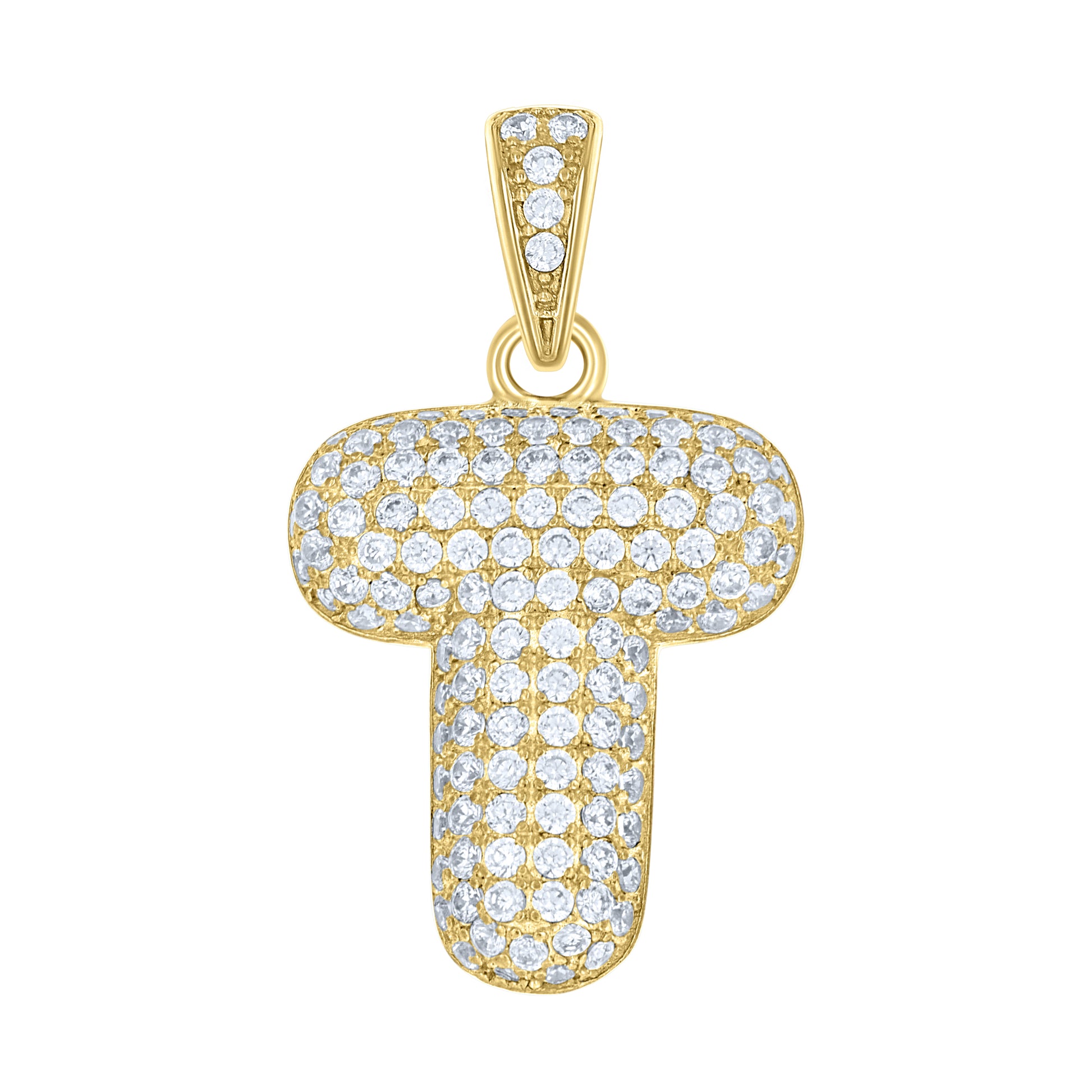 10kt Yellow Gold Unisex Cubic-Zirconia Bubble Initial Letter T Charm Pendant