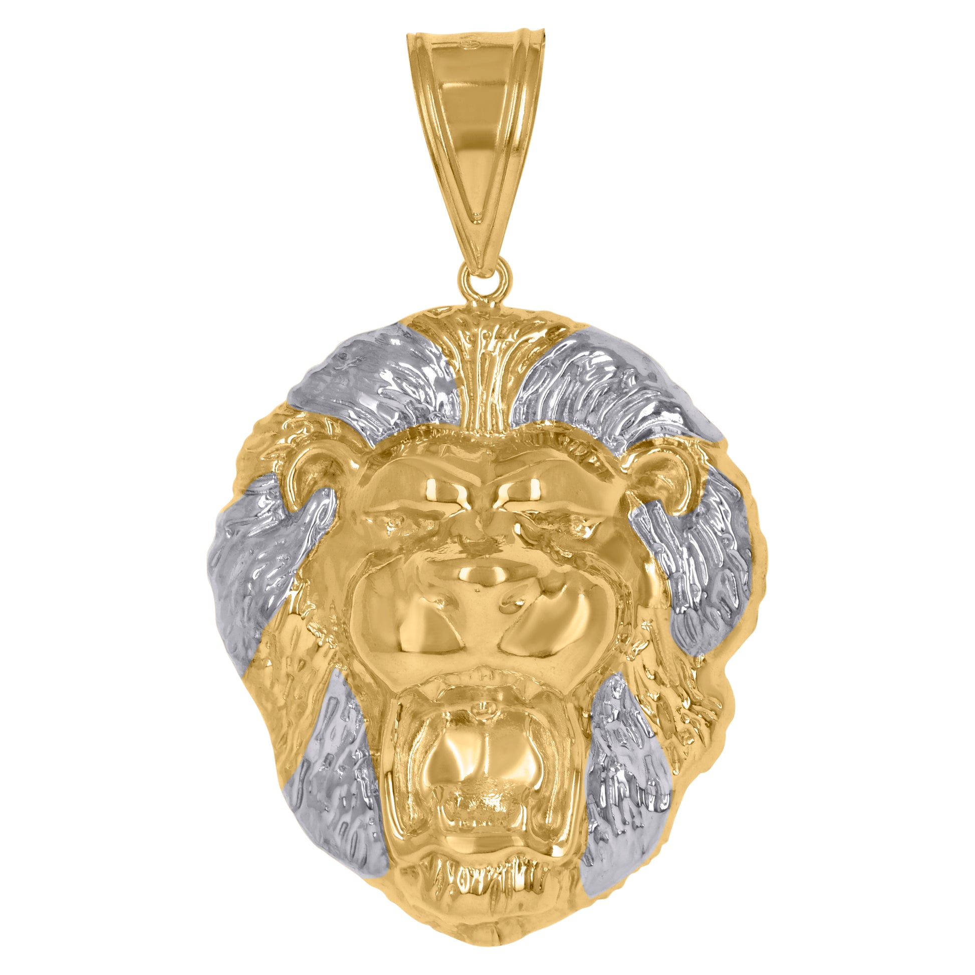 10kt Two-Tone Gold Mens Textured Zodiac Sign Leo Lion Head Charm Pendant