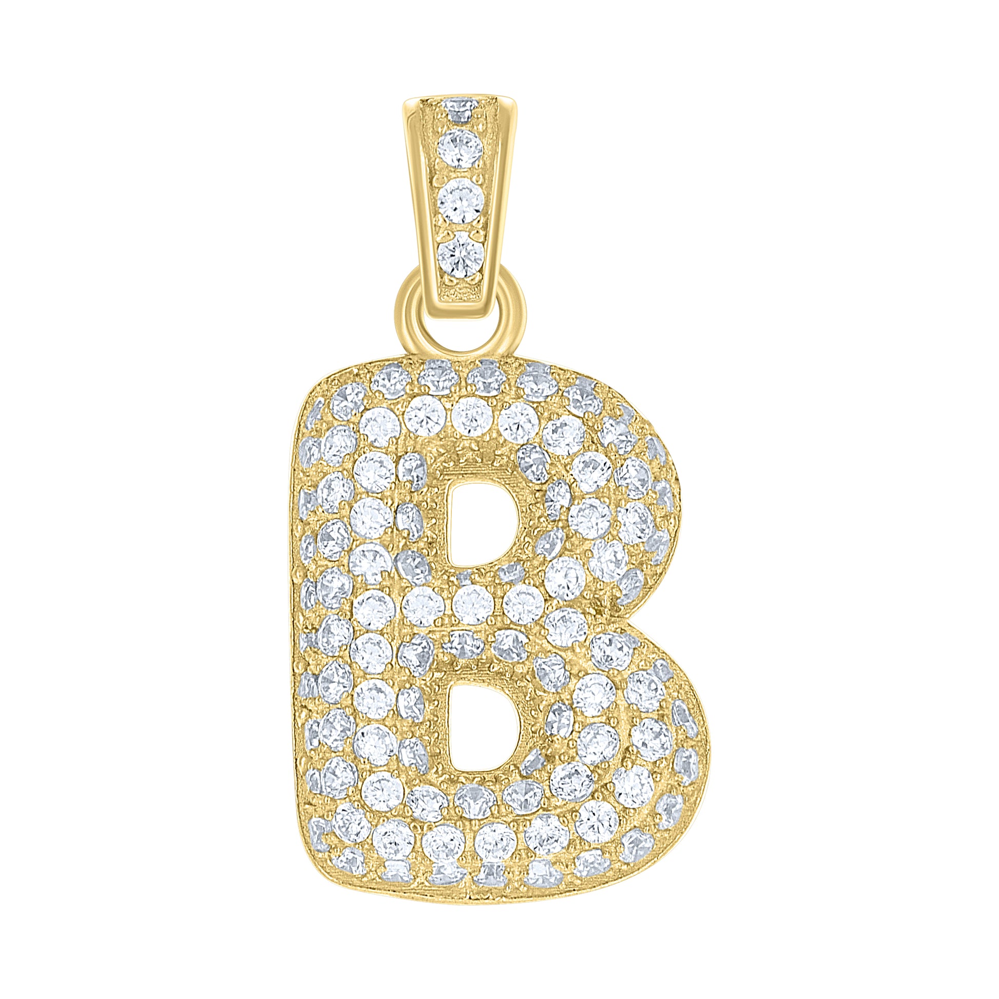 10kt Yellow Gold Unisex Cubic Zirconia Bubble Initial Letter B Charm Pendant