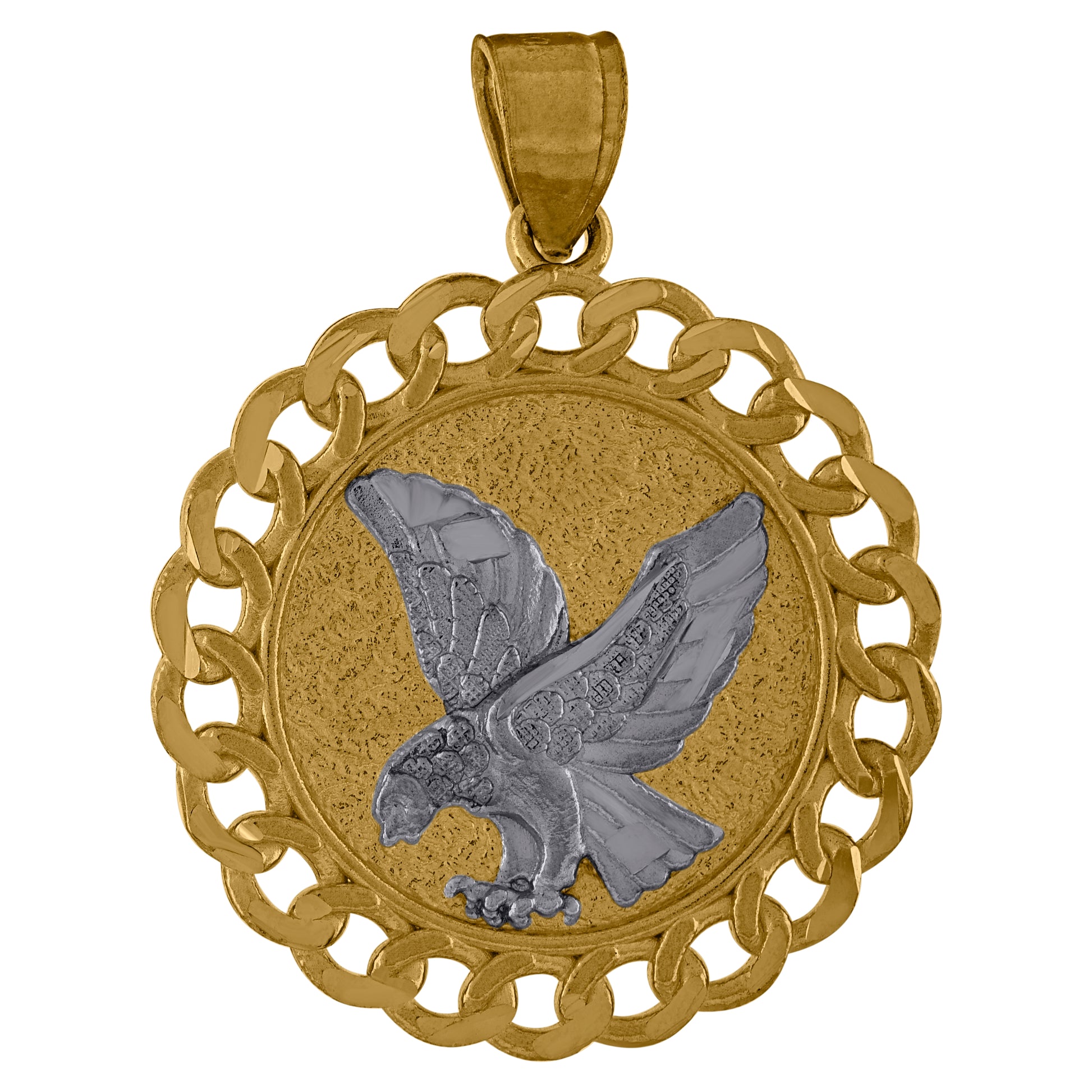 10kt Two-Tone Gold Mens Eagle Bird Patriotism Medallion Cuban Link Charm Pendant