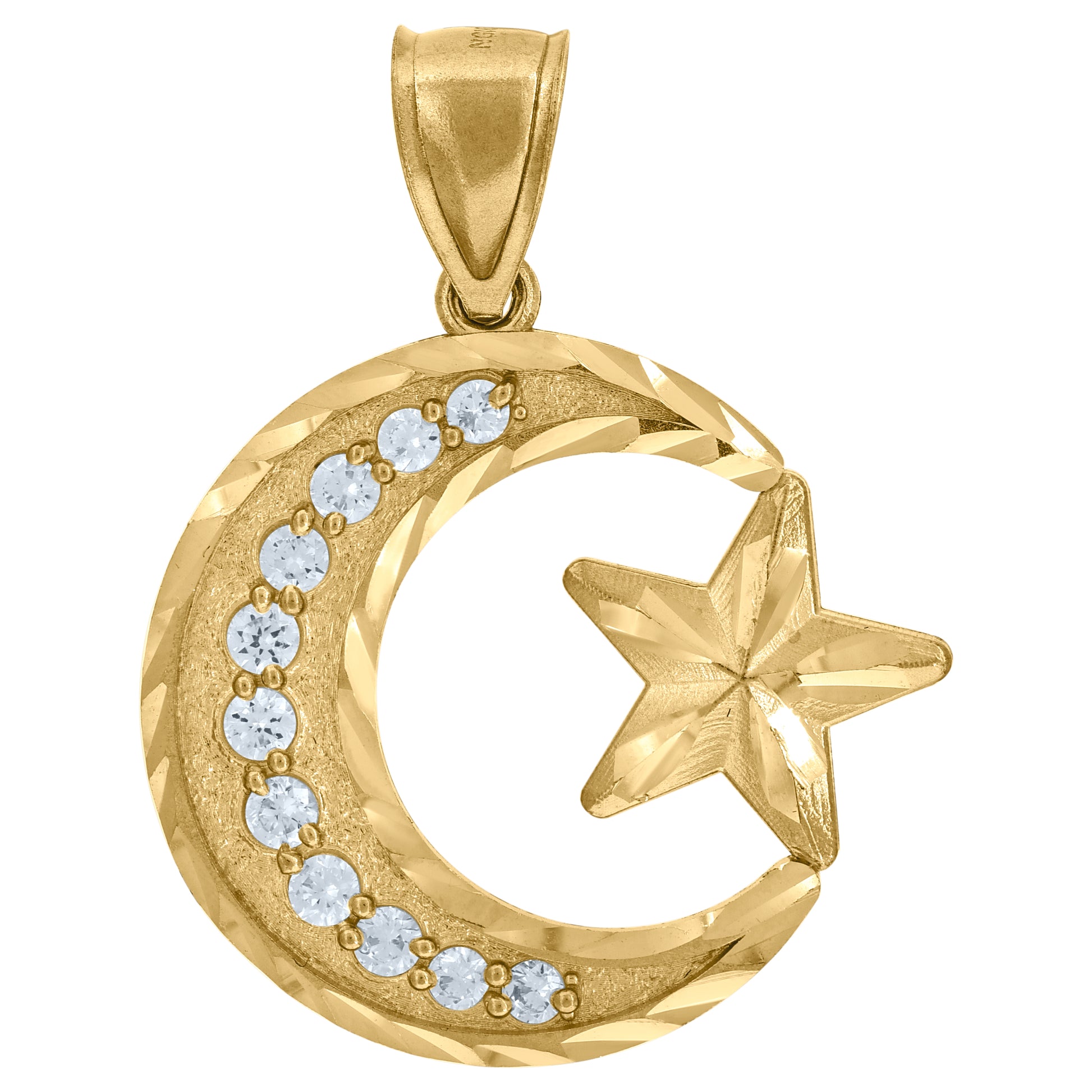 10kt Yellow Gold Unisex Cubic-Zirconia Celestial Moon Star Religious Charm Pendant